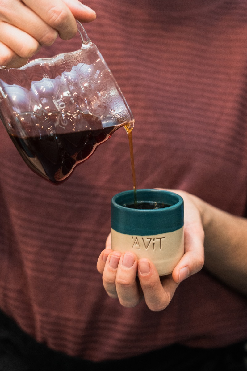 Ο καφές στο ‘Avit είναι σοβαρή υπόθεση, η κάθε δόση ζυγίζεται με απόλυτη ακρίβεια και τα φυτικά γάλατα θερμαίνονται στους 60 ºC για να εξασφαλίζεται πάντα το σωστό γευστικό αποτέλεσμα. Εδώ θα βρεις single origin καφέδες από μια συγκεκριμένη φάρμα και από μια συγκεκριμένη περιοχή. Εκτός από τον standard καφέ υπάρχει και ένας δεύτερος που αλλάζει σχεδόν κάθε μέρα, μπορεί δηλαδή να πετύχεις καφέ από τη Νικαράγουα, την Κόστα Ρίκα, τον Παναμά, την Κένυα κ.α. Οι καφέδες προέρχονται από εταιρεία που συνεργάζεται απευθείας με τους παραγωγούς χωρίς μεσάζοντες και με σεβασμό προς τον άνθρωπο και τη φύση. Συζητώντας για όλα αυτά φτάνει στο τραπέζι μας σε ένα πήλινο χρωματιστό φλιτζάνι ένας cappuccino με γάλα βρώμης. Ζεστός όσο πρέπει, υπέροχα αρωματικός και «γλυκόπιοτος» με το γάλα βρώμης να του ταιριάζει απίστευτα, μπορείς όμως να το ζητήσεις με γάλα καρύδας ή σόγιας. «Έχουμε πελάτες που έρχονται καθημερινά μόνο και μόνο για τον καφέ μας καθώς είναι specialty» επισημαίνει η Αυγή.