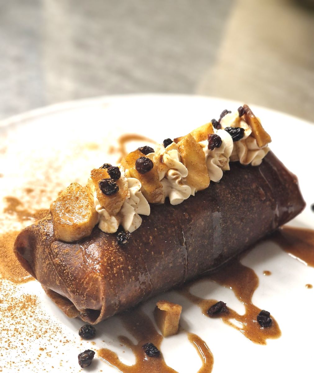 Στον γλυκό κατάλογο τώρα, προστέθηκαν δύο πληθωρικές κρέπες (η ζύμη των οποίων φτιάχνεται με μήλο και λιναρόσπορο), που αξίζουν την προσοχή σου. Η μία θυμίζει στρούντελ και σερβίρεται με παγωτό κανέλας, ψητά μήλα και σταφίδες και η άλλη έρχεται με παγωτό βανίλιας και φρέσκα φρούτα. Μια υγιεινή και θρεπτική επιλογή του γλυκού, στην οποία δύσκολα θα αντισταθείς.