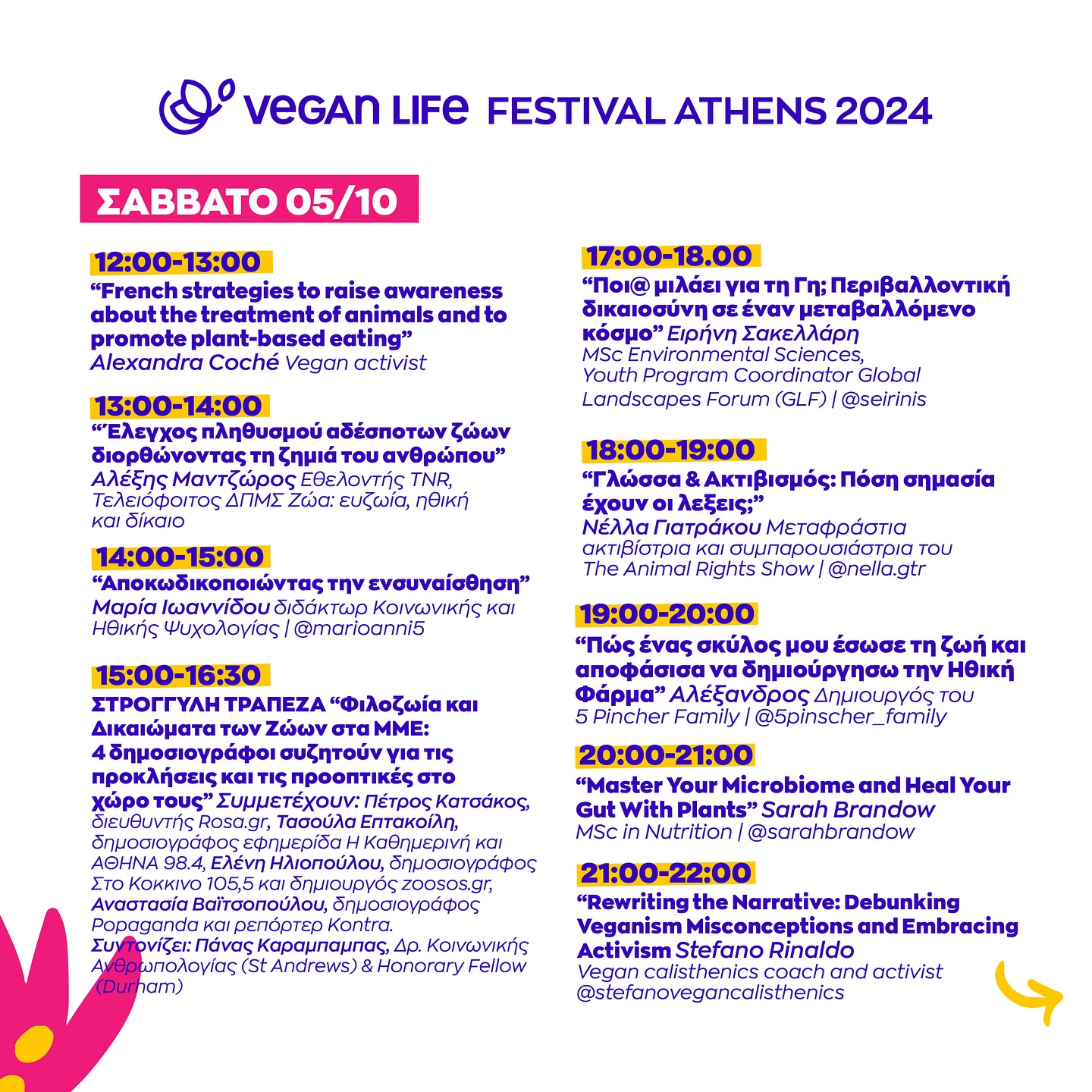 Δείτε παρακάτω το πλήρες πρόγραμμα με όλες τις ομιλίες που θα διεξαχθούν στο πλαίσιο του Vegan Life Festival.