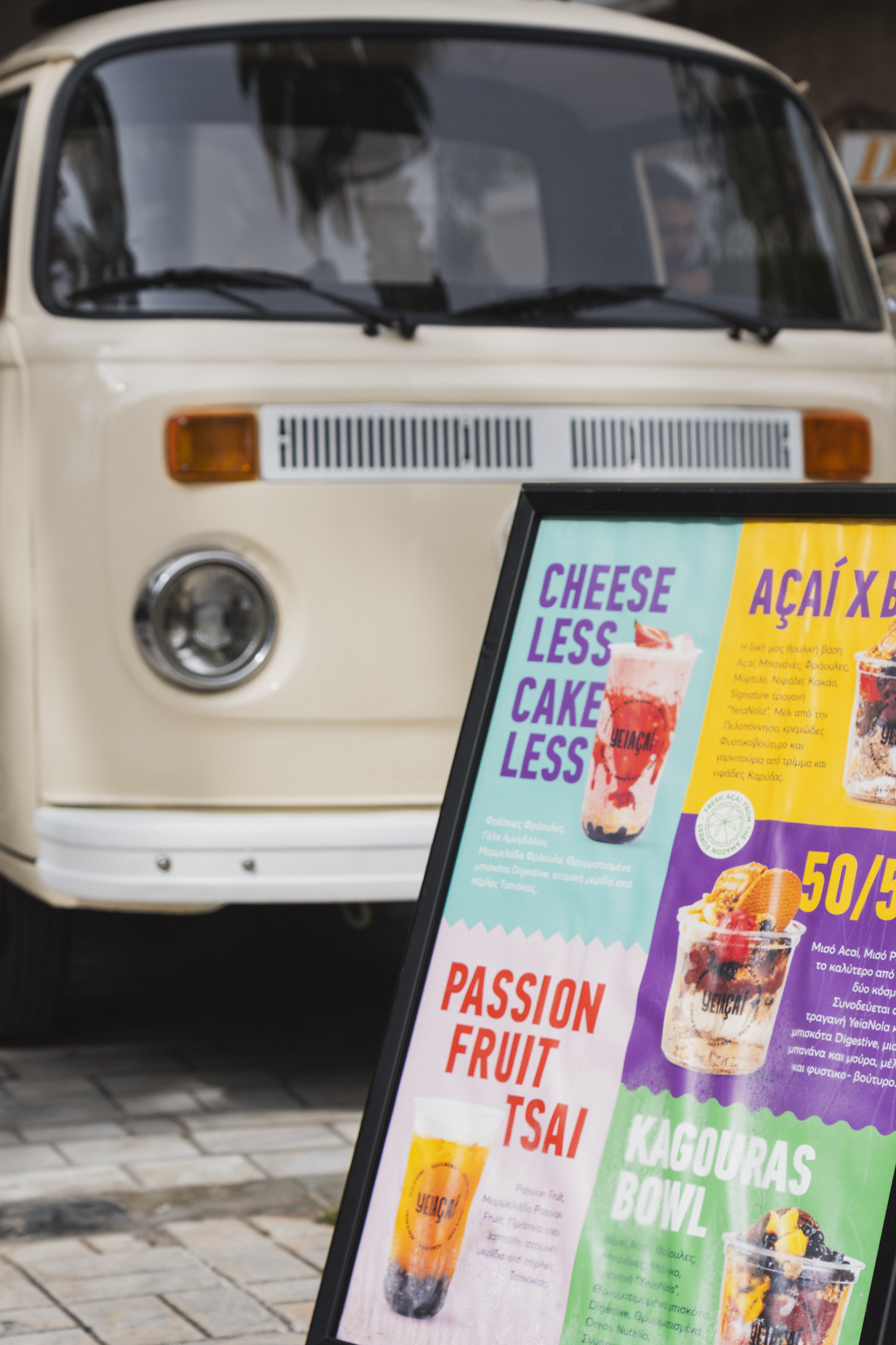 To μικρό άσπρο μαγαζί, με σήμα κατατεθέν ένα vintage βανάκι – που έχει μετατραπεί στον πιο cool παγκο με patchwork μαξιλάρια – παρκαρισμένο ακριβώς απ’έξω, το YEIAÇAÍ (προφέρεται γειασαΐ) «ξεπήδησε» στην Ανδρέα Παπανδρέου το καλοκαίρι του 2024, ακριβώς τη στιγμή που όλοι ψάχναμε κάτι δροσιστικό, φρέσκο και θρεπτικό για να συνοδεύσει τις βόλτες κάτω από τον ήλιο, και δεν άργησε να γίνει hotspot για νόστιμα snacks, ελαφριά lunches ή pre και post-workout smoothies γεμάτα ενέργεια.