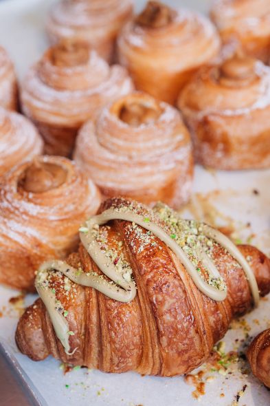 Η φιλοσοφία του pastry shop κινείται σε δύο άξονες – οι υγιεινές και πολύ νόστιμες επιλογές από τη μία και η boulangerie από την άλλη. Όλες οι συνταγές φτιάχνονται inhouse, σε μία πλήρως εξοπλισμένη και πεντακάθαρη κουζίνα (που έχει ακόμα και το δικό της δωμάτιο σοκολάτας όπου θέση έχει μόνο η Valhrona), τα ζυμάρια παίρνουν τον χρόνο τους και όλες οι πρώτες ύλες έρχονται από τους καλύτερους παραγωγούς. Babka, cinnamon rolls, macha cakes, energy bars είναι μερικές από τις ιδιαίτερες επιλογές, ενώ δεν λείπουν τα ψωμιά, τα κριτσίνια και τα bagels. Οι κάρτες χωρίζονται σε πρωινό – brunch με επιλογές όπως acai & energy bowls, smoothies, φρέσκους χυμούς και φυσικά τον specialty coffee του We Sud, σε σάντουιτς, που μπορεί να φτιάξει κάποιος μόνος του και σαλάτες με διατροφική αξία, και τέλος σε ένα all day menu που θα περιλαμβάνει pizza, μπρουσκέτες αλλά και ιδιαίτερα πιάτα ημέρας. Η ιδέα πίσω από το ντελικατέσεν είναι να προμηθευτεί κανείς αυτές τις επιπλέον λιχουδιές που χρειάζονται για να ολοκληρωθεί το τραπέζι. Αλλαντικά από Ισπανία και Ιταλία, τσάτνεϊ, χειροποίητα spreads, τρούφες, φανταστικά κριτσίνια και pasta βρίσκουν τη θέση τους στα ράφια του We Sud.