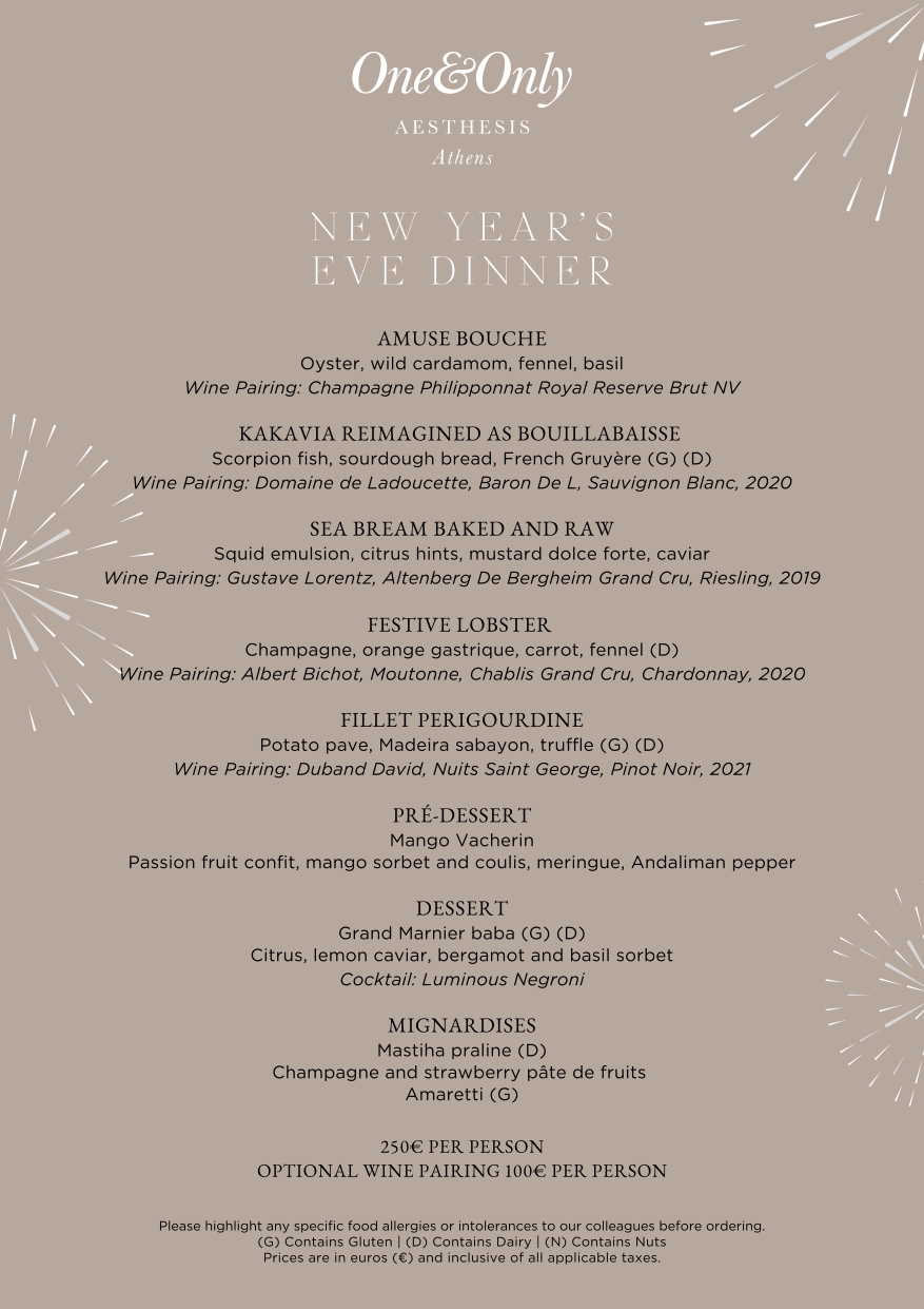 Την παραμονή των Χριστουγέννων ο κορυφαίος Ελληνοϊταλός σεφ θα δημιουργήσει αυτοπροσώπως μια σειρά από περίτεχνες γεύσεις με την προσωπική του πινελιά σε ένα εντυπωσιακό δείπνο οκτώ πιάτων, ενώ οι καλεσμένοι θα έχουν την επιλογή να το συνδυάσουν με την ειδικά επιμελημένη λίστα wine pairing για μια ολοκληρωμένη γαστρονομική εμπειρία.