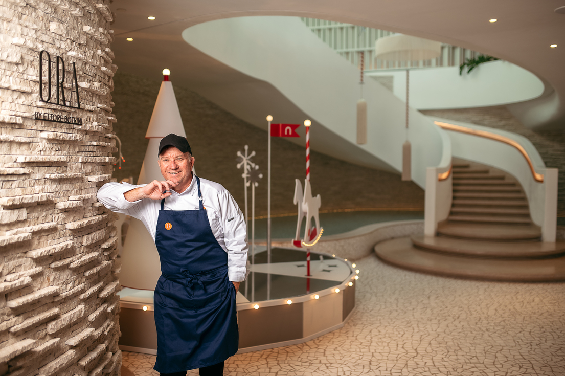 Κέντρο της γιορτινής λάμψης και των εκδηλώσεων στο πολυτελές resort, το εστιατόριο Ora με την υπογραφή του βραβευμένου Έκτορα Μποτρίνι, που έχει αναδειχθεί σε έναν instant classic προορισμό για υψηλή γαστρονομία που παντρεύει με τον καλύτερο τρόπο ελληνικές και ιταλικές γεύσεις.