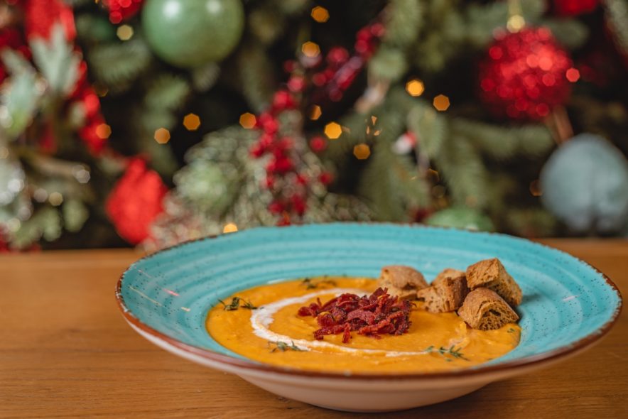 Σούπα γλυκοπατάτας βελουτέ με crispy παστράμι από τον Θανάση Καραΐνδρο
