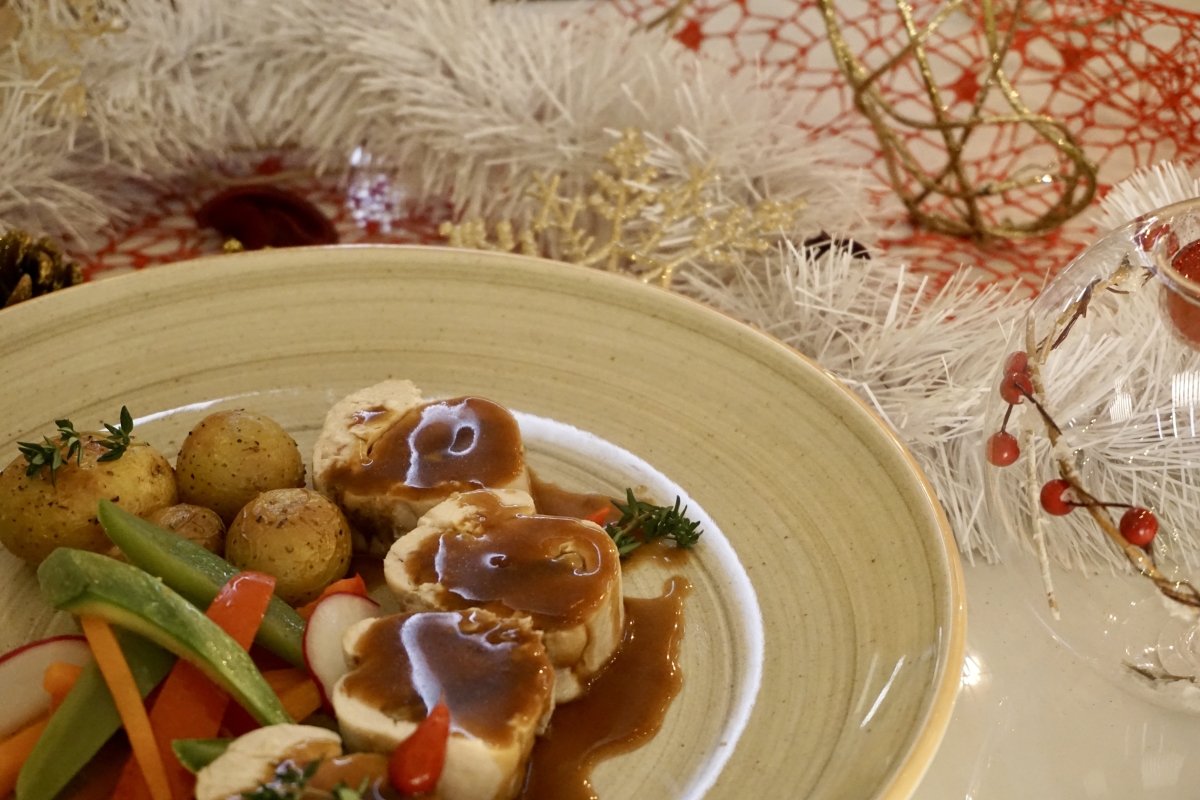 Γεμιστό στήθος κοτόπουλο με μανιτάρια και μυρωδικά & σάλτσα κόκκινου κρασιού αρωματισμένη με μέλι από τον Κωνσταντίνο Κωβαίο