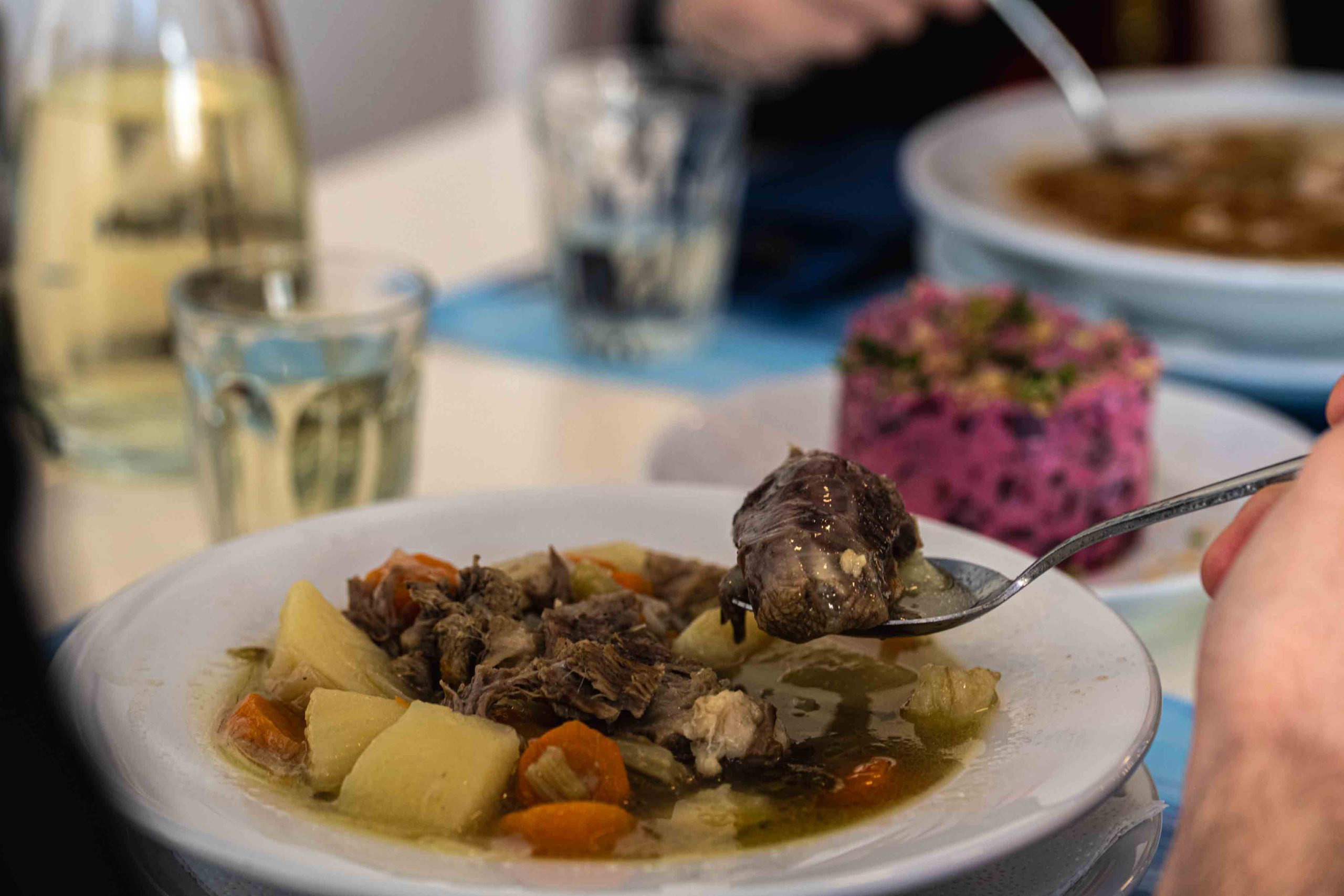 Ιδιαίτερη μνεία αξίζει να γίνει στον ίσως παρεξηγημένο πατσά-πόδι, αυτό το εξαίσιο το φαγητό-φάρμακο. Η σούπα παρασκευάζεται αποκλειστικά από το πόδι του μοσχαριού, με το σκορδοστούμπι και το καυτερό μπούκοβο να το απογειώνουν.