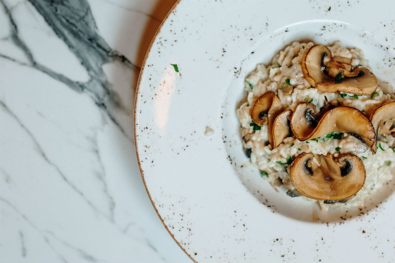 Στο risotto υπάρχουν τρία διαφορετικά είδη: Vegeteriano (με ανάμεικτα σοτέ λαχανικά), fungi (με ποικιλία μανιταριών agarius, porcini& portobello με άρωμα λευκής τρούφας) και gamberetti (με σοτέ γαρίδες) όπου ο κοινός παρονομαστής είναι πως το ριζότο φτιάχνεται με arborio.