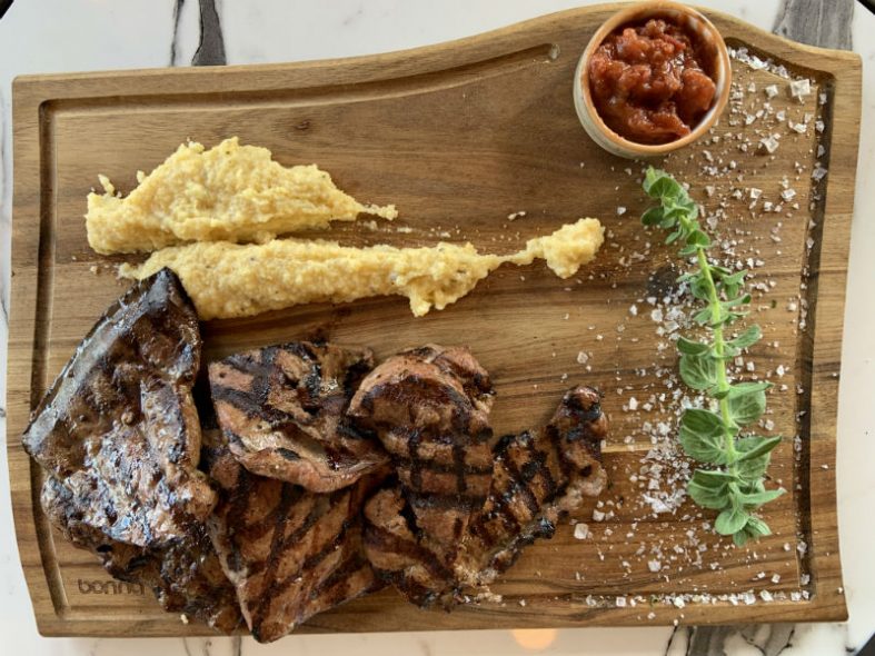 Το μενού ολοκληρώνεται με 6 προτάσεις για κρέας, πολύ ψαγμένες και ιδιαίτερες. Ξεκινάμε από την πρώτη ύλη όπου πολλά κρέατα έρχονται από την Αμερική και οι κοπές ικανοποιούν κάθε γούστο. Στο μενού μεταξύ άλλων θα βρείτε Fegato 400γρ -τρυφερό συκώτι μοσχαρίσιο, μαριναρισμένο σε γάλα και ψημένο στη σχάρα, Tagliatelle Flank steak 300gr -μοσχάρι black Angus Flank steak Us με grana padano και Braciola Di Maiale 900gr -ψητή σπαλομπριζόλα γάλακτος με κόκαλο και ανθό αλατιού.