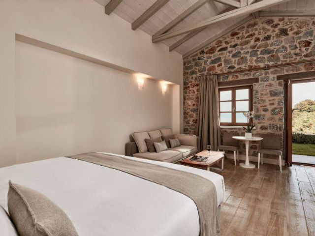 Τα πολυτελή δωμάτια και σουίτες του καταλύματος παρέχουν εκλεπτυσμένες ανέσεις και διαθέτουν εντυπωσιακούς εσωτερικούς χώρους. Ένας πανέμορφος διαμορφωμένος κήπος περιβάλλει τις εγκαταστάσεις του ξενοδοχείου δημιουργώντας μια αίσθηση μικρού παράδεισου, ενώ η αμμώδης παραλία, που απέχει λιγότερο από 700 μέτρα, θα κάνει τις βουτιές σας στο Ιόνιο αξέχαστες.