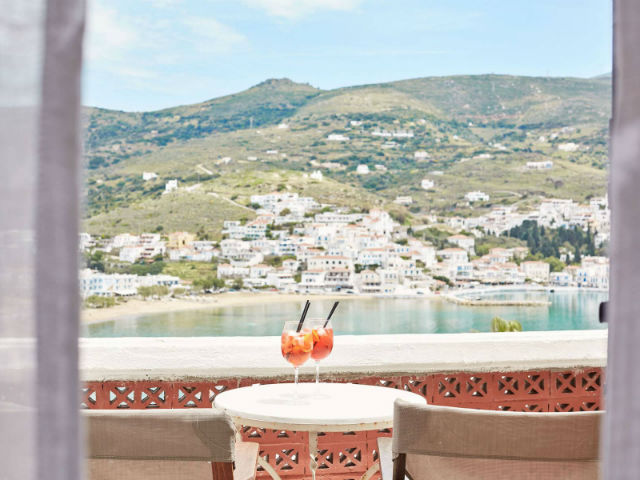 Διαθέτει πισίνα με μπαρ, το οποίο λειτουργεί όλη την ημέρα, ενώ υπάρχει à la carte εστιατόριο με μεσογειακή κουζίνα. Το εστιατόριο του καταλύματος σερβίρει παραδοσιακές τοπικές λιχουδιές και γκουρμέ επιλογές από φρέσκα προϊόντα της Άνδρου. Προσφέρονται επίσης διάφορα κοκτέιλ και τοπικά ποτά, όπως τσίπουρο.