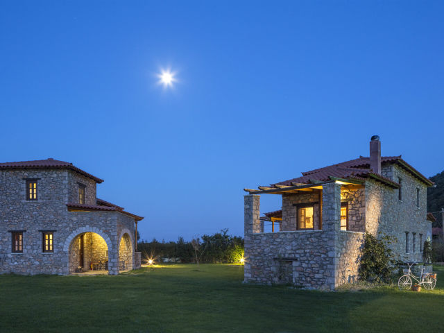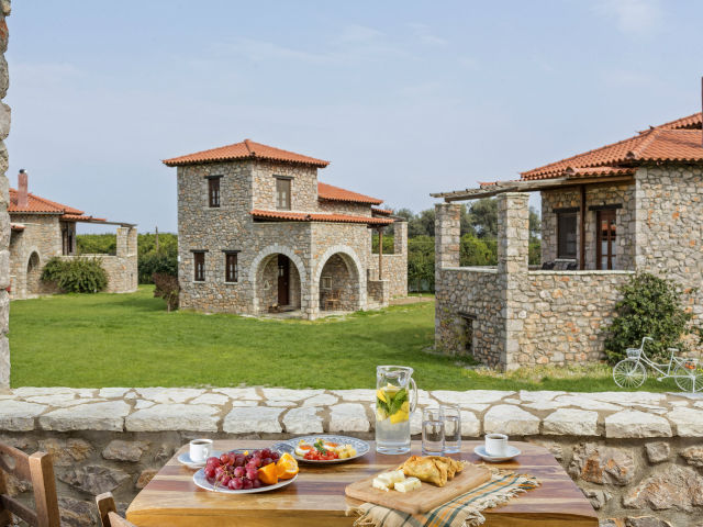 Στη μέση ενός καταπράσινου κήπου, δέκα πέτρινα αυτόνομα αγροτόσπιτα, χτισμένα σύμφωνα με την τσακώνικη αρχιτεκτονική παράδοση, με ξύλινα ταβάνια, χειροποίητα κεντήματα και τα διάσημα σε όλο τον κόσμο υφαντά, χωριάτικο τζάκι, παραδοσιακά έπιπλα και πλακόστρωτη αυλή, είναι έτοιμα να σας υποδεχτούν. Το μόνο που μένει, είναι να επιλέξετε το «δικό σας», να αφήσετε τον εαυτό σας ελεύθερο και να εναρμονιστείτε με τη φύση. Ένας τεράστιος βιολογικός κήπος υπό την επιβλητική σκιά του Πάρνωνα. Θα σας ξυπνήσει το κελάιδισμα των πουλιών, θα δείτε πώς οι «αληθινές» ντομάτες γονιμοποιούνται από τις μέλισσες και θα ξεναγηθείτε στις βιολογικές καλλιέργειες.