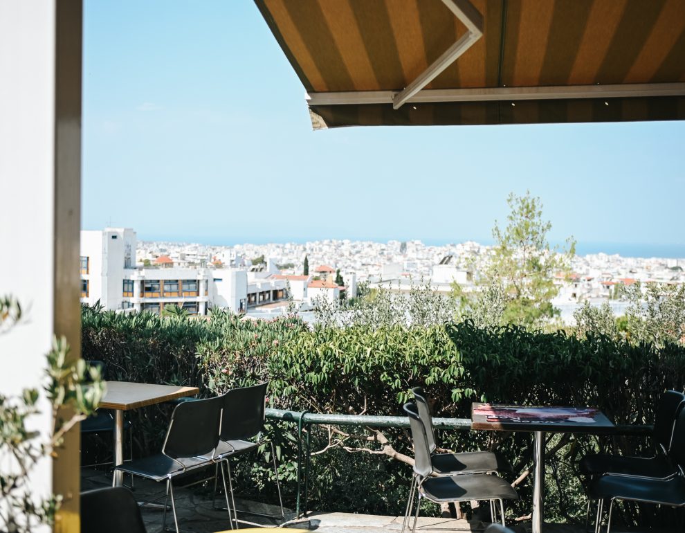Όμως ακόμα και αν δεν θέλεις να κρυφτείς ανάμεσα στα πυκνά φυλλώματα παριστάνοντας ότι το δάσος είναι το σπίτι σου κι εσύ ένας ήρωας του μυθιστορήματος, το αναψυκτήριο του άλσους σε περιμένει για να δροσιστείς και να ανανεωθείς σε μικρά μεταλλικά τραπεζάκια, με θέα τον Σαρωνικό και την Αθήνα.