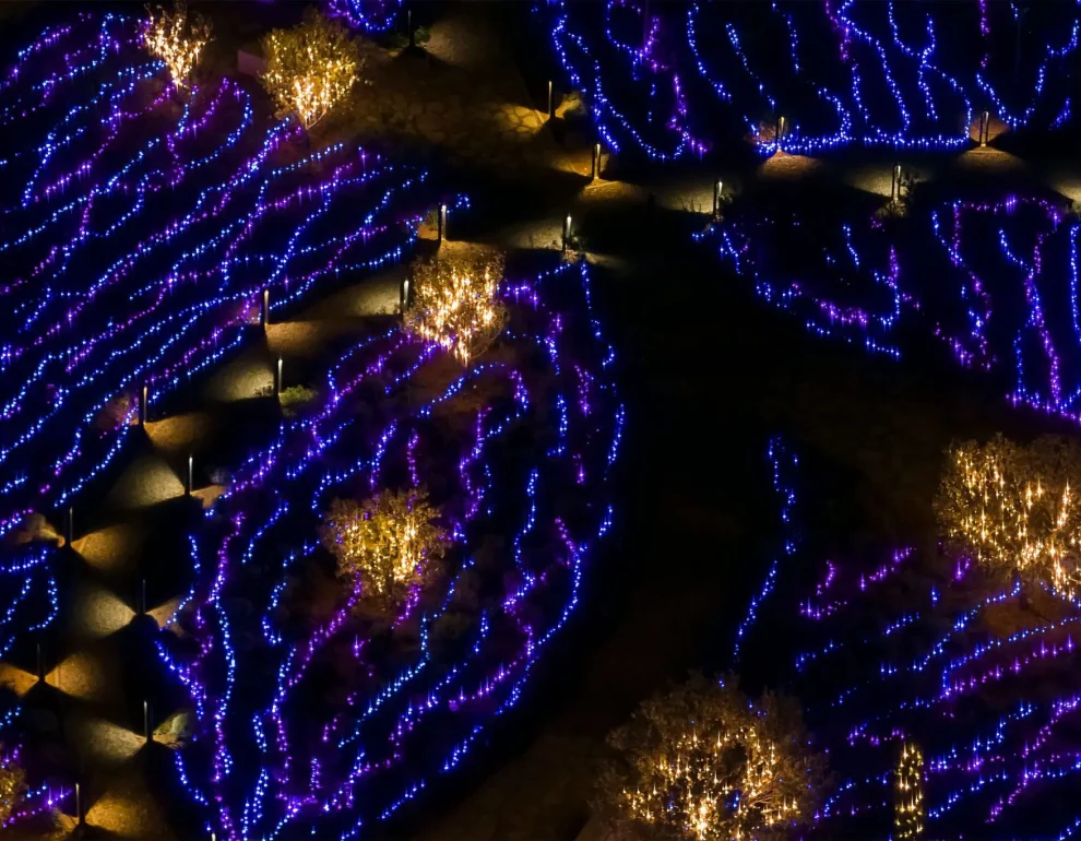 Φέτος εκεί μας περιμένει το εντυπωσιακό χριστουγεννιάτικο δέντρο στην Πλατεία Α, το συντριβάνι που πια έχουμε αγαπήσει, ένα καρουζέλ βγαλμένο από παραμύθι στην Πλατεία Β του πάρκου και μια εγκατάσταση φωτισμού με ηλιακή ενέργεια στον κήπο Ζεν, η οποία έχει δημιουργήσει το τέλειο εορταστικό σκηνικό. Την ίδια στιγμή, στον κήπο δίπλα στο σιντριβάνι, τα χριστουγεννιάτικα φώτα δημιουργούν σχέδια εμπνευσμένα από τον διάσημο πίνακα του διάσημου ζωγράφου Βίνσεντ Βαν Γκογκ «Η Έναστρη Νύχτα».