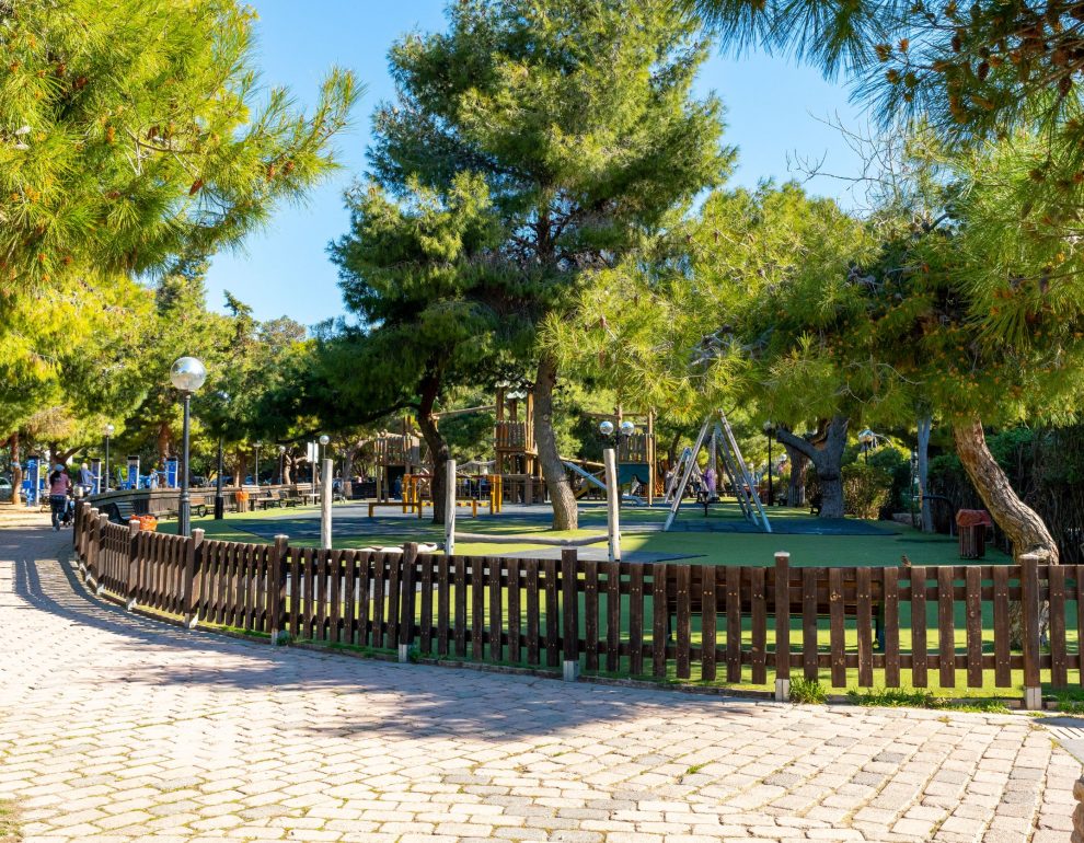 Η στάση στην παιδική χαρά που βρίσκεται πίσω από την εκκλησία του Αγίου Ιωάννη, μόλις λίγα μέτρα από την κεντρική πλατεία, είναι αυτονόητη, πριν ή μετά τη βόλτα. Είτε λόγω της βολικής τοποθεσίας της, είτε λόγω του γεγονότος ότι είναι μια πραγματικά όμορφη παιδική χαρά, κυριολεκτικά μέσα στα πεύκα και το πράσινο, αλλά και μεγάλη, τα Σαββατοκύριακα θα δεις ότι επικρατεί το αδιαχώρητο, με τα παιδιά να διασκεδάζουν όσο οι γονείς κάθονται στα παγκάκια, χαλαρώνουν και απολαμβάνουν καφέ στο χέρι.