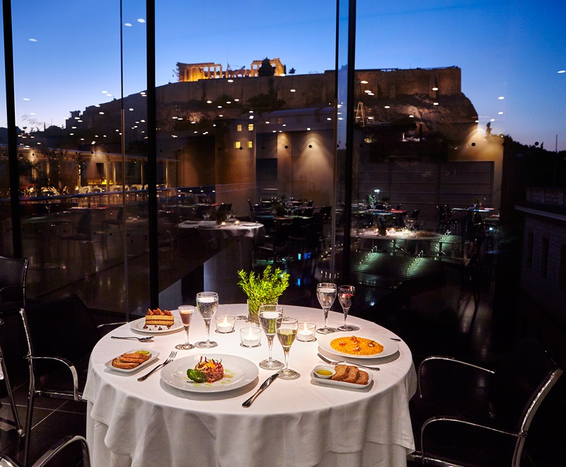 Με την πιο εντυπωσιακή θέα στην Ακρόπολη, το εστιατόριο που βρίσκεται στον δεύτερο όροφο του μουσείου προσφέρεται για ρομαντική έξοδο, ειδικά εάν είσαι τυχερός και προνοητικός και φροντίσεις να κάνεις την κράτησή σου μία βραδιά με πανσέληνο. Το εστιατόριο λειτουργεί από τις 9 το πρωί και έως τις 12 το μεσημέρι σερβίρει παραδοσιακό, ελληνικό πρωινό. Στη συνέχεια και ως το βράδυ σειρά έχει το βασικό μενού του εστιατορίου επίσης με παραδοσιακές συνταγές, ενώ κάθε Παρασκευή και Σάββατο βράδυ το εστιατόριο παραμένει ανοιχτό έως τα μεσάνυχτα σερβίροντας ξεχωριστό μενού. Σημείωσε ότι για την είσοδο στο εστιατόριο του δευτέρου ορόφου απαιτείται η προμήθεια μηδενικού εισιτηρίου από τα εκδοτήρια του μουσείου.