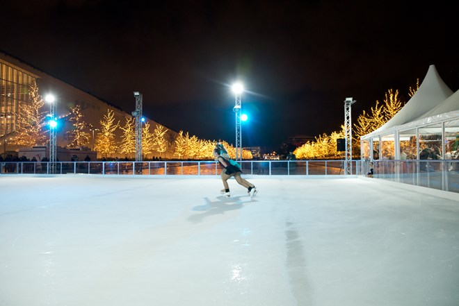 Για τρίτη συνεχόμενη χρονιά, το παγοδρόμιο ανεβάζει τον παλμό στον Χριστουγεννιάτικο Κόσμο του ΚΠΙΣΝ, με τους επίδοξους πατινέρ να στροβιλίζονται σε γιορτινούς ρυθμούς και τα παγοπέδιλα να παίρνουν φωτιά. Τοποθετημένο φέτος στην αρχή του Καναλιού, στο ύψος του Κέντρου Επισκεπτών, δίνει στους φίλους του κατεξοχήν χριστουγεννιάτικου σπορ την ευκαιρία να απολαύσουν μια μαγευτική θέα του χορού των Σιντριβανιών και του φωτισμένου Καναλιού «εκ των έσω».