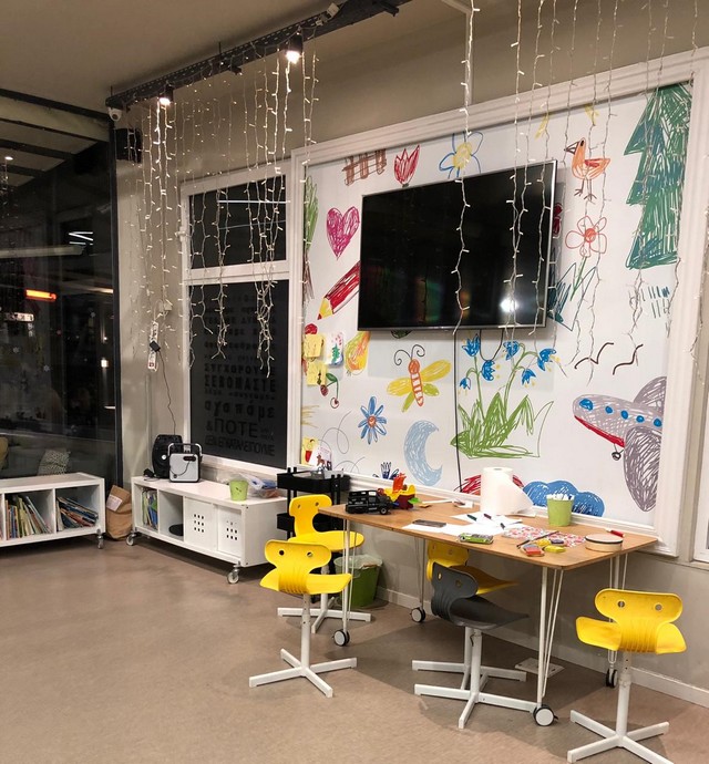 Ωστόσο, εσύ απολαμβάνεις τον (καλό) καφέ σου σε ένα άνετο σκηνικό που δεν έχει τίποτα να ζηλέψει από μια κανονική καφετέρια, με ωραίο μουσικό background. Μόνος, ή με παρέα, θα διαθέσεις χρόνο στον εαυτό σου, ενώ παράλληλα θα ξέρεις ότι το μικρό σου διασκεδάζει με την ψυχή του.
