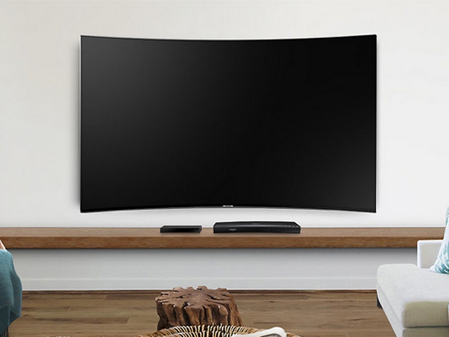 Tην curved τηλεόραση για ραντεβού στον καναπέ