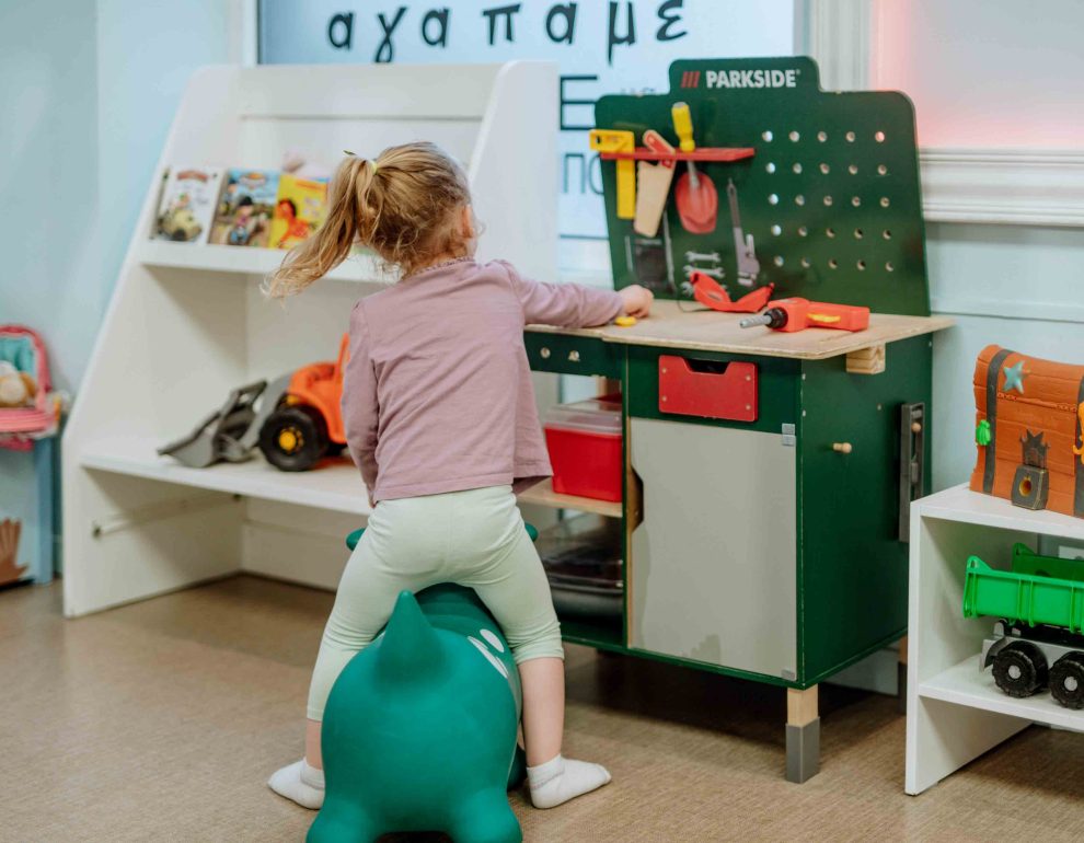 Στην Αργυρούπολη, το «Παίξε Γέλασε» κινείται σε διαφορετική λογική από έναν κλασικό παιδότοπο, καθώς βασίζεται σε πιο ελεύθερο και δημιουργικό παιχνίδι. Ο βασικός χώρος είναι διαμορφωμένος σαν μια μικρογραφία σπιτιού, με props και αξεσουάρ – από κουζινικά μέχρι στολές – που δίνουν στα παιδιά τη δυνατότητα να παίξουν ρόλους και να κινηθούν πιο βιωματικά.