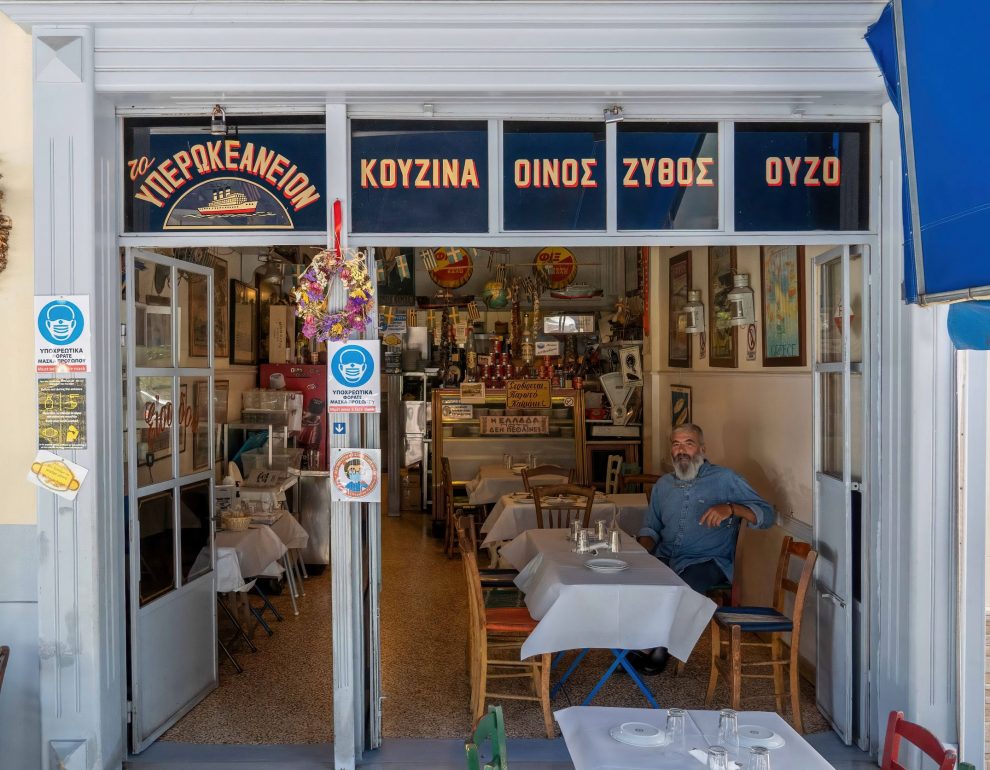 Κάθε φορά που περνάμε την πόρτα του Υπερωκεάνειον, έχουμε την ίδια αίσθηση: σαν να μπαίνουμε σε σκηνικό παλιάς ελληνικής ταινίας. Δεν είναι τυχαίο ότι πάντα μας έρχεται στο μυαλό ο Κώστας Χατζηχρήστος από το Της Κακομοίρας. Η διακόσμηση, το γυάλινο ψυγείο, οι λεπτομέρειες στους τοίχους – όλα σε βάζουν αμέσως στο κλίμα.
