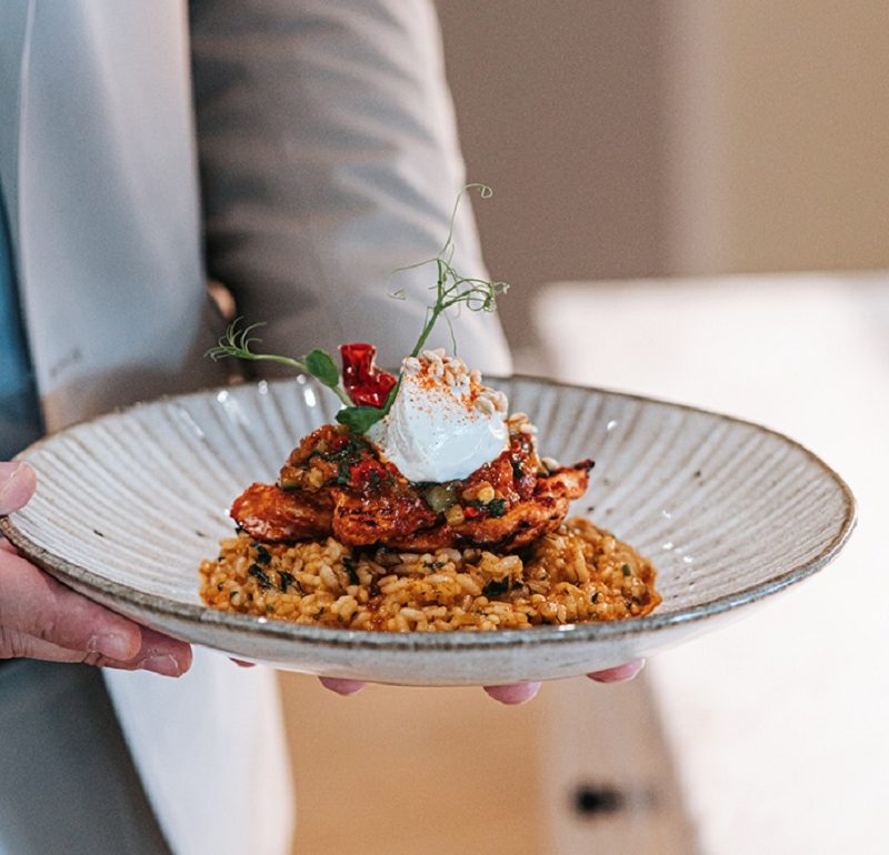 Το ίδιο προσεγμένο βέβαια και το μενού του, που έχει επιμεληθεί ο σεφ Μιχάλης Ντουνέτας. Οι μεσογειακές γεύσεις είναι το κυρίαρχο στοιχείο του καταλόγου, χωρίς να λείπουν και κάποια ασιατικά στοιχεία.