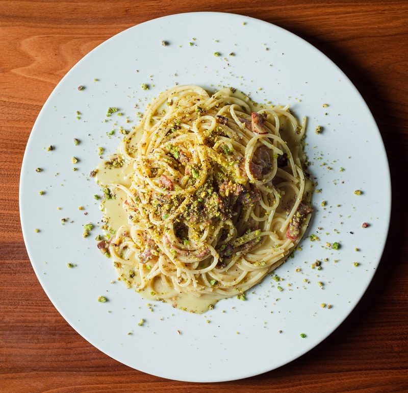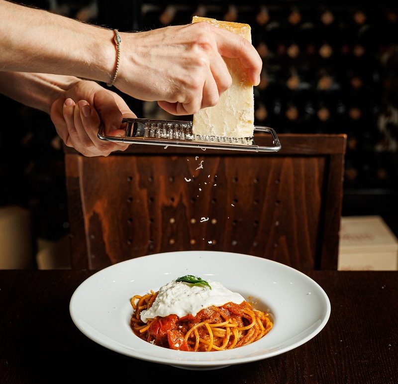 Μετά, αφήνεσαι στα χέρια του Σισιλιάνου σεφ Pino Saccheri, ο οποίος μέσα από τα πιάτα του σε ξεναγεί στις πιο όμορφες γωνιές της Ιταλίας. Οι γεύσεις αυθεντικές και πλούσιες σε αρώματα. Εκπληκτικές οι ταλιατέλες με παντζάρι, ζουμερές γαρίδες, λεμόνι και βανίλια, εντυπωσιακό στην εμφάνιση και το Tortelloni A La Carbonara με γενναία δόση guanciale, περιζήτητη η πίτσα με ζυμάρι που ωριμάζει για δύο εικοσιτετράωρα, με αγαπημένες την Buratta Con Mortadella και την Vegeteriano με topping λαχανικά εποχής που μοσχοβολάνε Μεσόγειο.