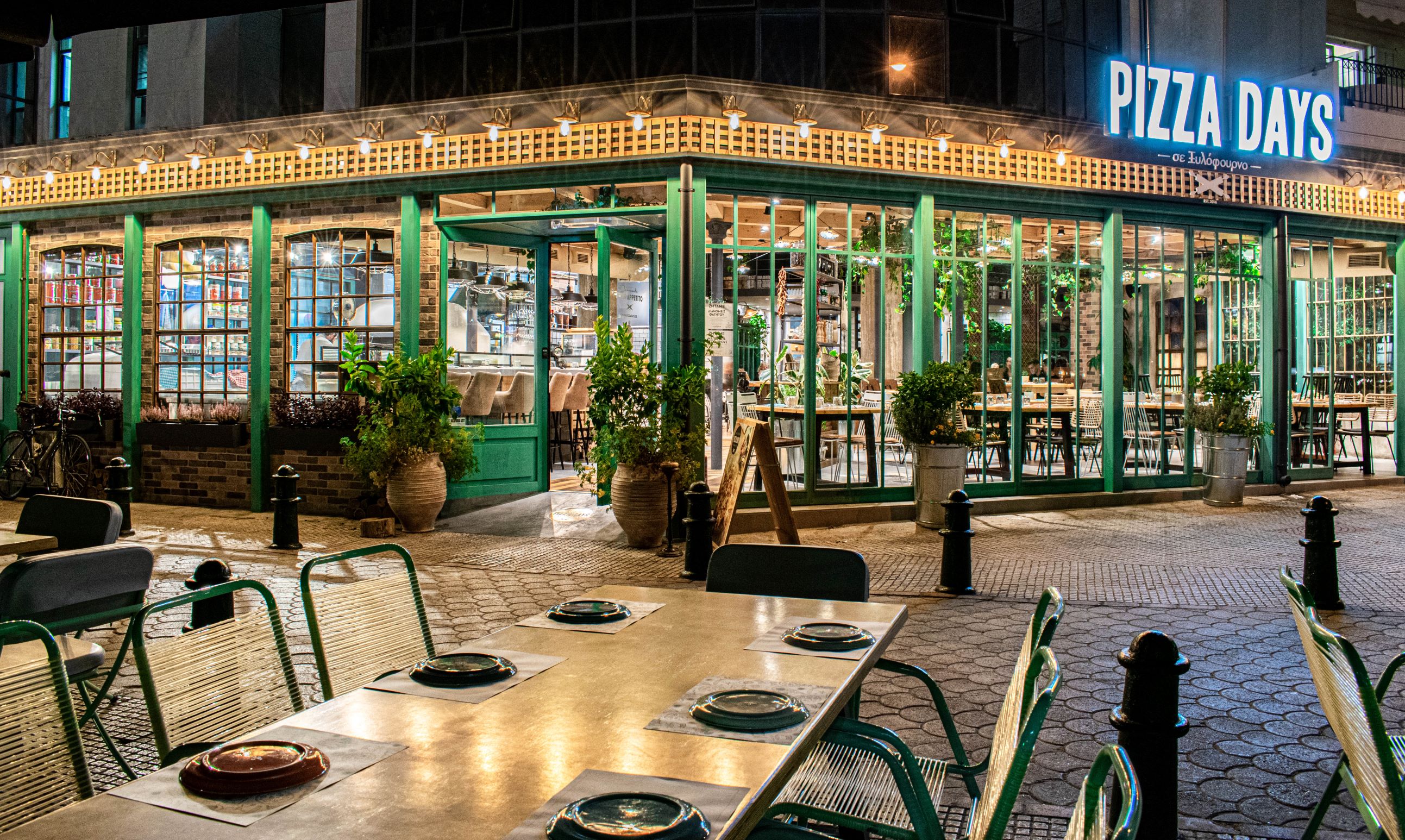 Στα συν του Pizza Days δεν μπορούμε βέβαια να παραλείψουμε τη φωτεινή, φιλόξενη και άνετη σάλα του – όπου κυριαρχούν το ξύλο και τα γήινα χρώματα – αλλά και τα τραπεζάκια έξω, στη family friendly και δροσερή πλατεία Ηρώων.