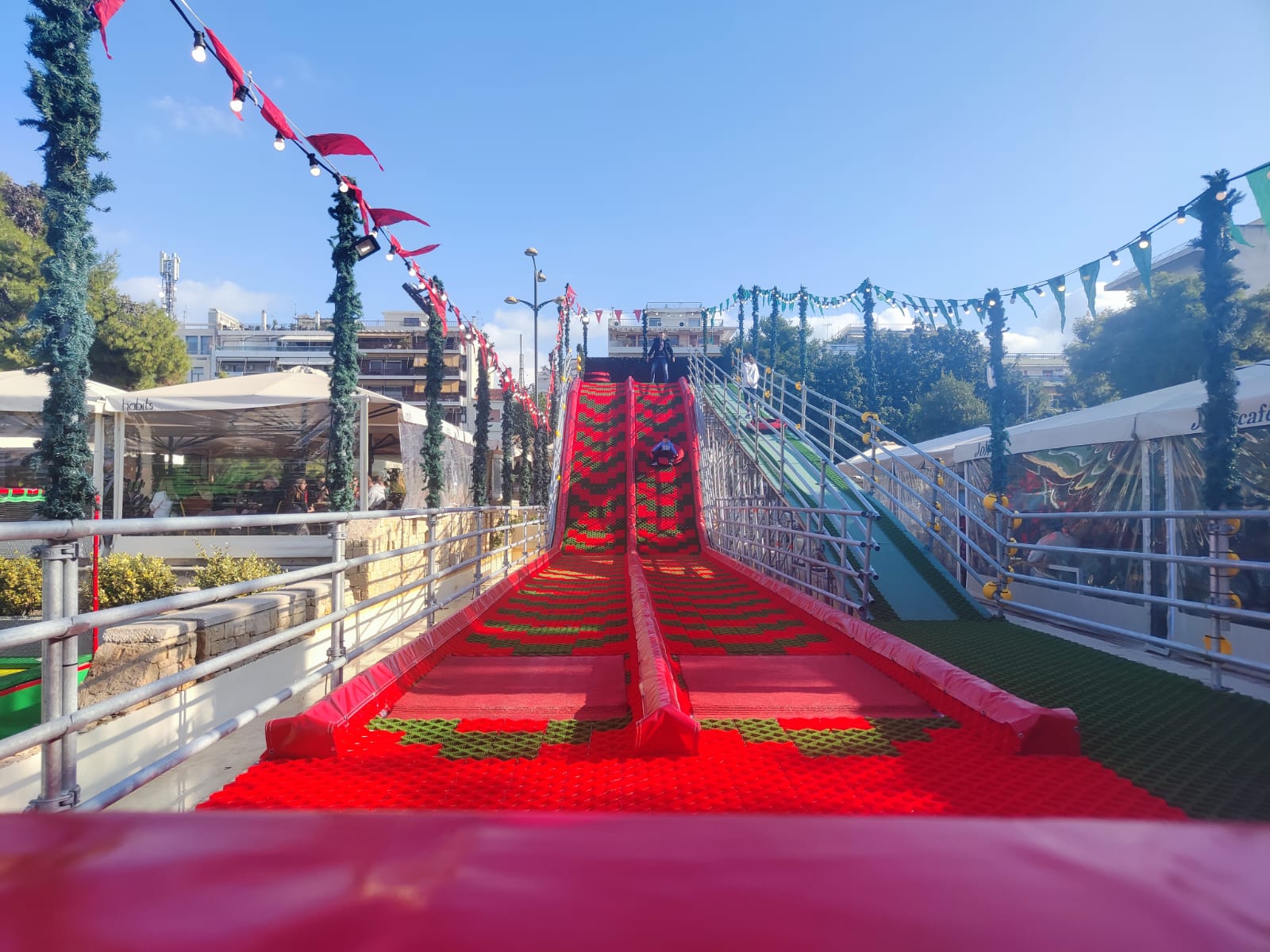 Το χριστουγεννιάτικο χωριό της Νέας Σμύρνης προσφέρει αρκετές ψυχαγωγικές δραστηριότητες – από καρουζέλ και παγοδρόμιο, μέχρι μια τεράστια τσουλήθρα, έναν περιστρεφόμενο “Goofy” κι ένα γιγαντιαίο τραμπολίνο. Και κάπως έτσι, η κεντρική πλατεία της περιοχής, χάρη στο χωριό αλλά και στις πολύ ωραίες επιλογές για χριστουγεννιάτικα ψώνια, τα εμβληματικά καφέ της και τις αμέτρητες προτάσεις για φαγητό, αποτελεί για ακόμα μία χρονιά έναν από τους αγαπημένους μας προορισμούς στα νότια για χριστουγεννιάτικες βόλτες.