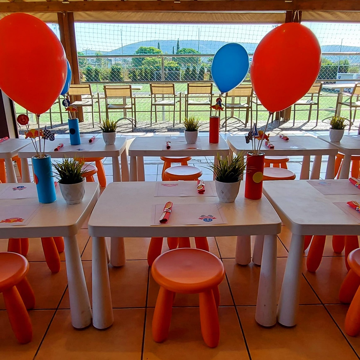 Τον στολισμό τον αναλαμβάνουμε εξ ολοκλήρου εμείς, σε συνεργασία με συνεργάτη μας και με βάση πάντα το θέμα που έχει επιλέξει η κάθε οικογένεια. Στο πάρτι μπορούμε να έχουμε animater εφόσον ζητηθεί, ενώ παράλληλα πραγματοποιούμε διάφορες διασκεδαστικές δραστηριότητες στον εσωτερικό χώρο, όπως ζωγραφική, μουσικές καρέκλες και bubble show. Βέβαια, για ατελείωτο παιχνίδι, διαθέτουμε και μεγάλα φουσκωτά που τοποθετούνται εξωτερικά, στα γήπεδα ποδοσφαίρου και τα απολαμβάνουν με την καρδιά τους όλα τα παιδιά.