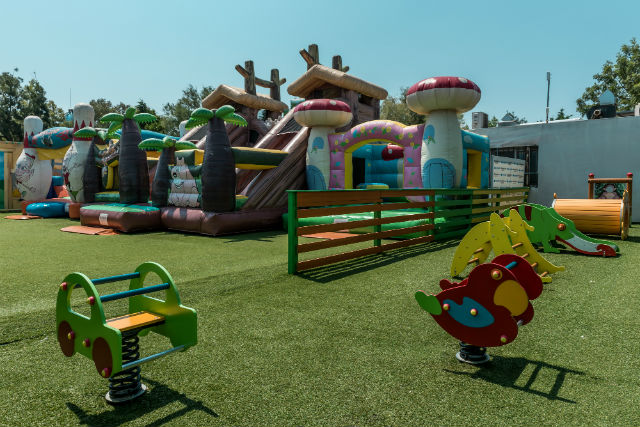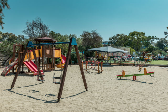 Πριν ξεκινήσει το παιχνίδι χρειαζόμαστε ενέργεια. Έτσι παραγγείλαμε το πρωινό μας: δύο χορταστικές ομελέτες με χυμό πορτοκάλι. Και τώρα… παιχνίδι! Η παιδική χαρά διαθέτει κούνιες, τραμπάλα και πλαστικά παιχνιδάκια για βρέφη και είναι δωρεάν. Ο παιδότοπος διαθέτει bouncy castle, λιμνούλα με βαρκούλες, καρουζέλ, μίνι luna park και τρενάκι.