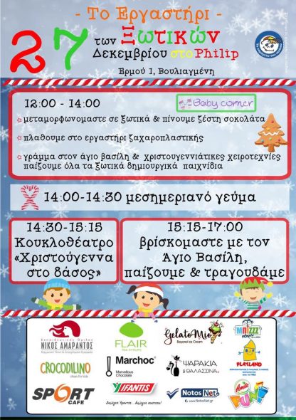 KIDS Χριστουγεννιάτικο event στο Philip by Artopolis στις 27/12 Share this Στο αγαπημένο στέκι των νοτίων ετοιμάζεται το "Εργαστήρι των Ξωτικών" στις 27/12. Ένα χριστουγεννιάτικο event για τους μικρούς μας φίλους. 19/12/2018, 15:14 Κείμενο: Χριστίνα Ζάχου