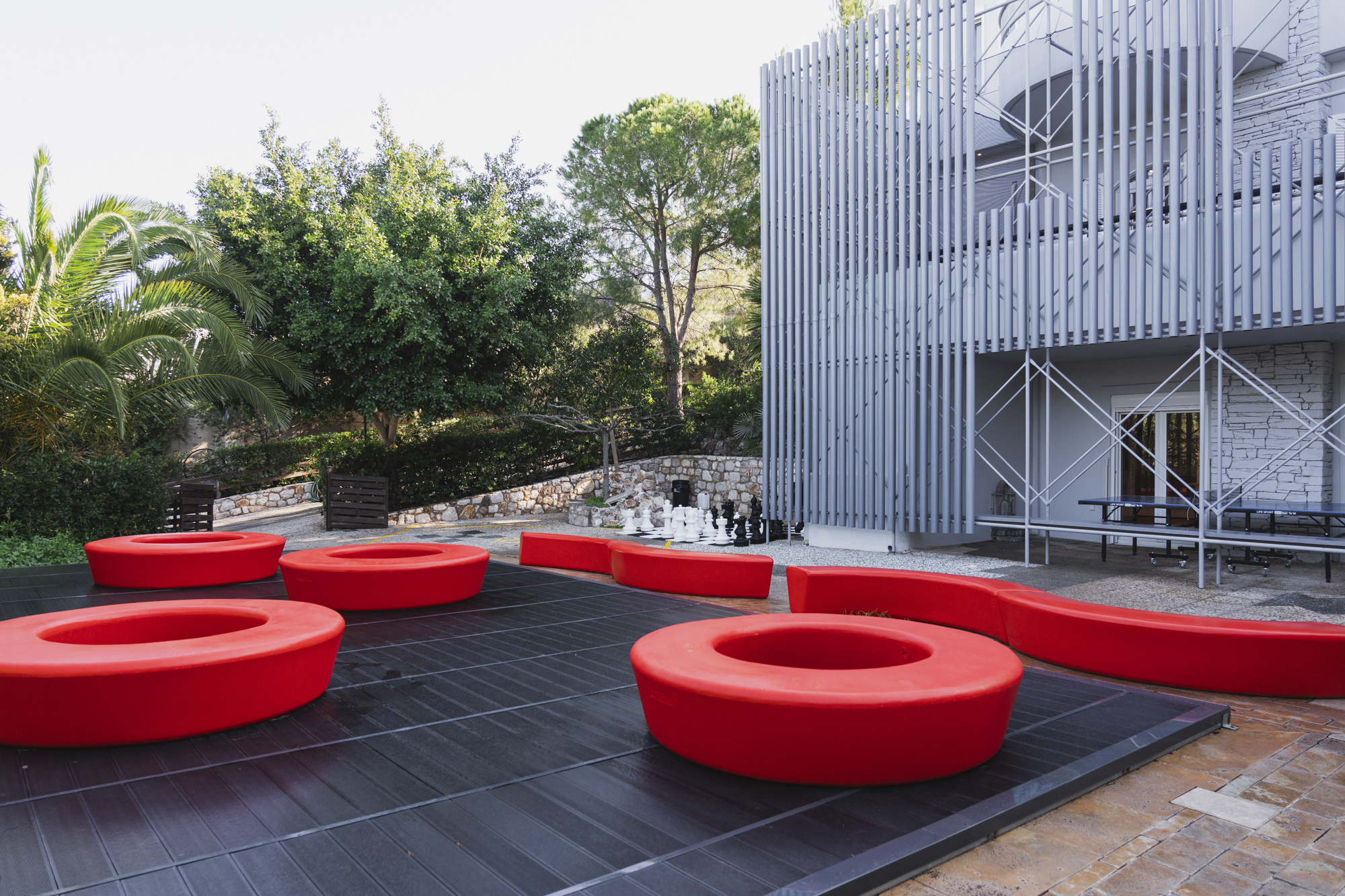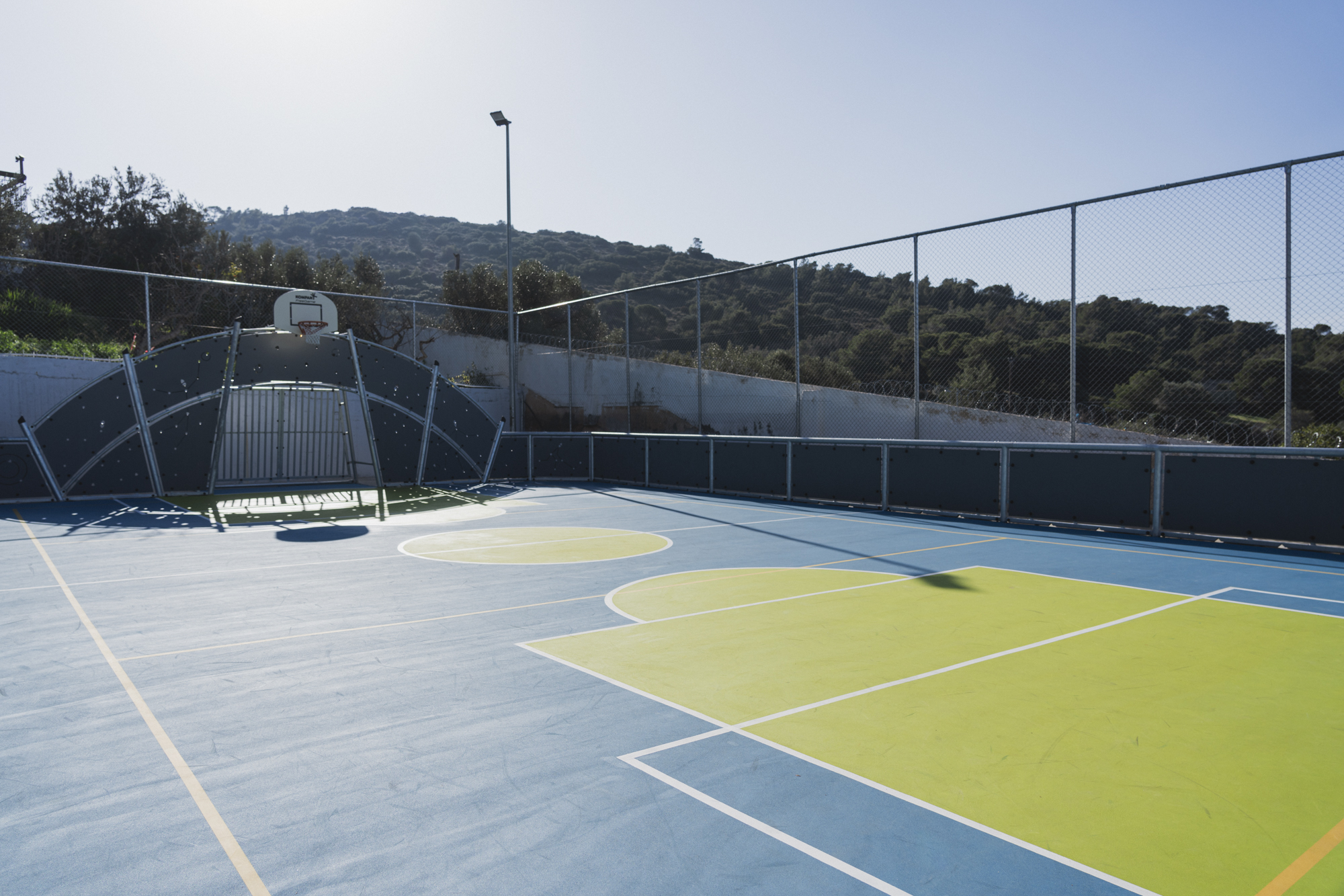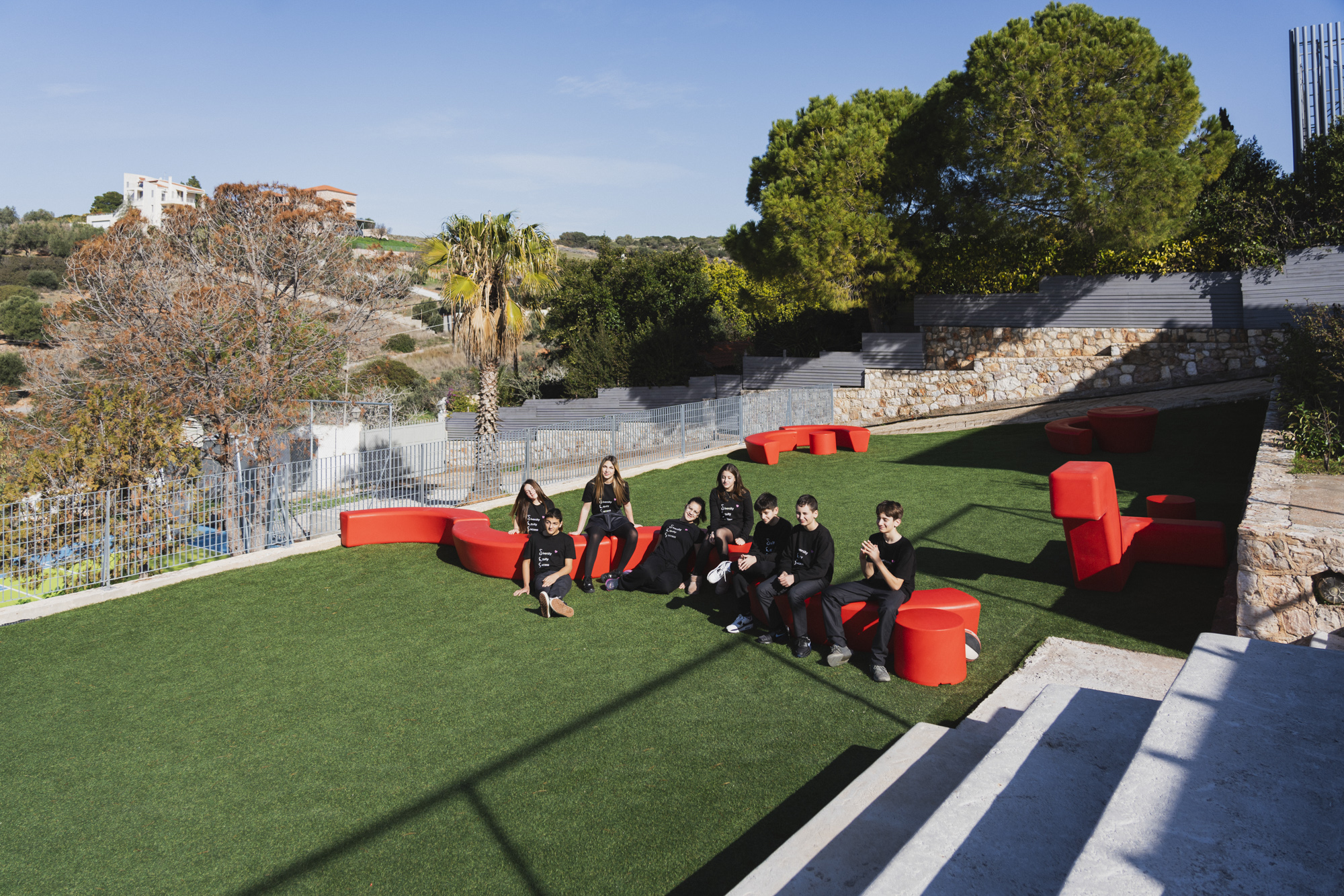 Έχοντας ως επίκεντρό του τη βιωματική, ενεργητική μάθηση, το ΔΕΣ ενθαρρύνει τη διεξαγωγή μαθημάτων και εκτός της σχολικής αίθουσας. Ζωτικής σημασίας άλλωστε είναι οι εξωτερικοί χώροι του, που συνδυάζουν εξειδικευμένες ζώνες για αθλητικές δραστηριότητες, δημιουργικά εργαστήρια και καλλιτεχνική έκφραση: «Ο εξωτερικός χώρος ενός σχολείου αποτελεί κρίσιμο παράγοντα για την ολιστική ανάπτυξη των μαθητών, διότι παρέχει ευκαιρίες για φυσική δραστηριότητα, κοινωνική αλληλεπίδραση και βιωματική μάθηση. Στο δημοτικό μας σχολείο, οι λιτοί χώροι ενθαρρύνουν την ελευθερία της φαντασίας και της δημιουργικότητας, προσφέροντας στα παιδιά ένα περιβάλλον για εξερεύνηση και ανάπτυξη βασικών δεξιοτήτων. Αντίθετα, οι έφηβοι χρειάζονται χώρους εμπλουτισμένους με ποικίλες δραστηριότητες που όχι μόνο υποστηρίζουν την ακαδημαϊκή τους πρόοδο, αλλά και ενισχύουν την κοινωνική τους ανάπτυξη, την αυτοέκφραση και την ομαδικότητα. Η αυλή του Γυμνασίου του Διαδραστικού Ευρωπαϊκού Σχολείου είναι σχεδιασμένη με γνώμονα τις ιδιαίτερες ανάγκες των εφήβων. Αυτή η πλούσια και δυναμική διαμόρφωση όχι μόνο ενισχύει τη συγκέντρωση και τη συμμετοχή των μαθητών, αλλά τους προσφέρει επίσης το περιβάλλον που απαιτείται για την ανάπτυξη σημαντικών δεξιοτήτων και για την επίτευξη μιας βαθύτερης, βιωματικής μάθησης. Συνολικά, ο εξωτερικός χώρος στο Διαδραστικό Ευρωπαϊκό Σχολείο λειτουργεί ως καταλύτης για μια ολοκληρωμένη εκπαιδευτική εμπειρία, προσαρμοσμένη στις διαφορετικές αναπτυξιακές ανάγκες κάθε ηλικιακής ομάδας και συμβάλλοντας καθοριστικά στην προσωπική και κοινωνική ανάπτυξη των μαθητών» συνεχίζει η δημιουργός του ΔΕΣ.