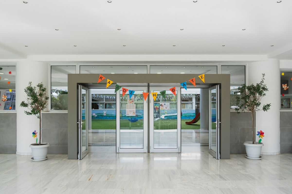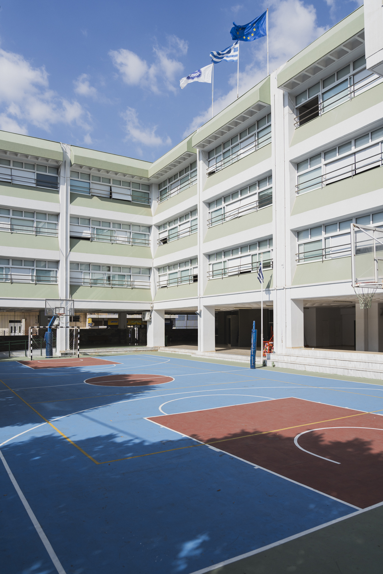 Προχωράμε στο δημοτικό σχολείο, που βρίσκεται στο Μοσχάτο Αττικής. Ο λόγος για ένα υπερσύγχρονο κτήριο, που φιλοξενεί τα παιδιά της πρωτοβάθμιας εκπαίδευσης δίνοντάς τους επιπλέον κίνητρα για γνώση κι άθληση μέσα από τους χώρους. Θυμίζουμε ότι ο στόχος είναι η ισορροπία ψυχής, σώματος και νου και η ελεύθερη έκφραση.