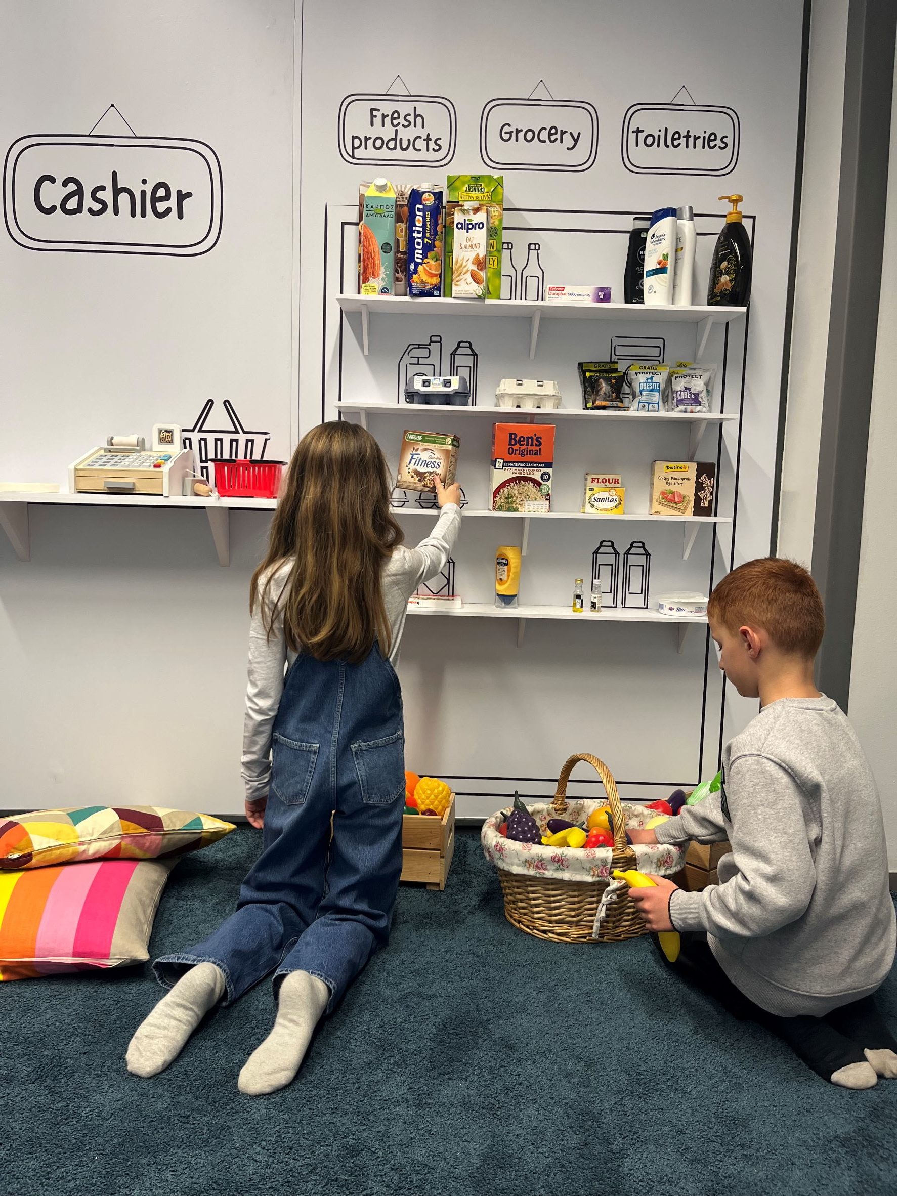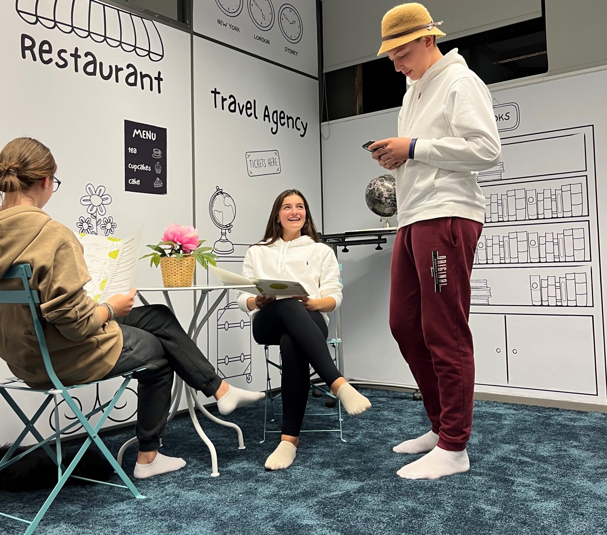 Πολύ σωστά. Προσθέστε και μία τράπεζα, ένα ταξιδιωτικό γραφείο και ένα ιατρείο και έχετε την εικόνα. Αυτοί είναι οι χώροι που αποτυπώνονται στο Myrsini’s village μέσα από ειδικές ταπετσαρίες, έπιπλα και εξοπλισμό! Σε αυτές λοιπόν τις διαφορετικές «γωνιές» του χωριού μας οι μαθητές κάνουν προφορική εξάσκηση της ξένης γλώσσας χρησιμοποιώντας το αντίστοιχο λεξιλόγιο μέσα από παιχνίδια ρόλων. Έτσι η χρήση της ξένης γλώσσας γίνεται φυσικά, αβίαστα, αλλά και πολύ διασκεδαστικά. Σαν αποτέλεσμα, η εμπέδωση της διδασκόμενης ύλης γίνεται πολύ πιο εύκολα, γιατί τα παιδιά μαθαίνουν ευκολότερα όταν περνάνε καλά.