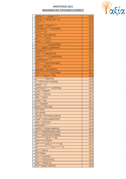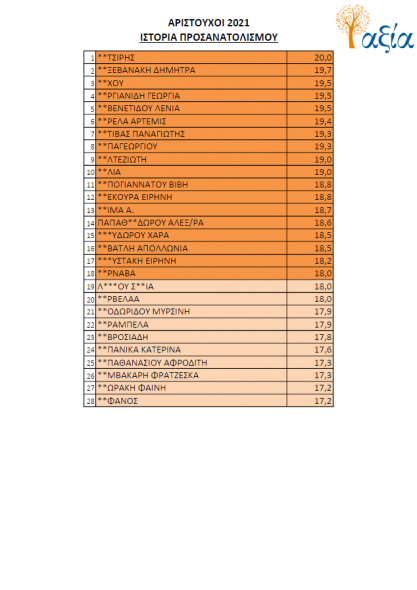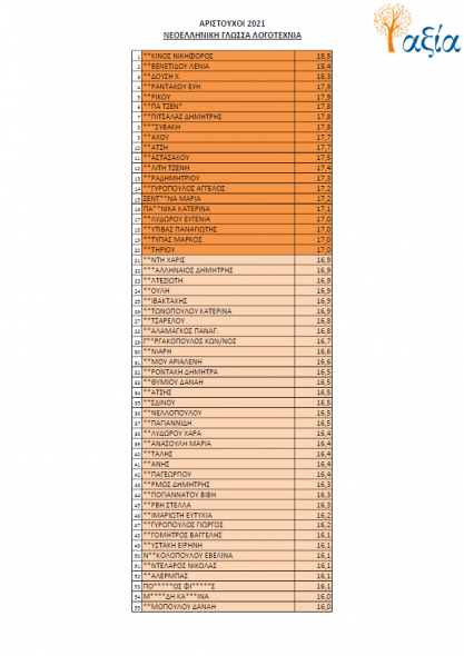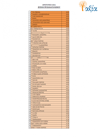 Για μια ακόμη χρονιά, οι μαθητές του Ομίλου Φροντιστηρίων “Αξία” κατόρθωσαν να σημειώσουν άριστες επιδόσεις σε όλα τα επιστημονικά πεδία και να ξεχωρίσουν στους πίνακες των βαθμολογιών συγκριτικά με τα πανελλαδικά στατιστικά σε όλα τα μαθήματα.