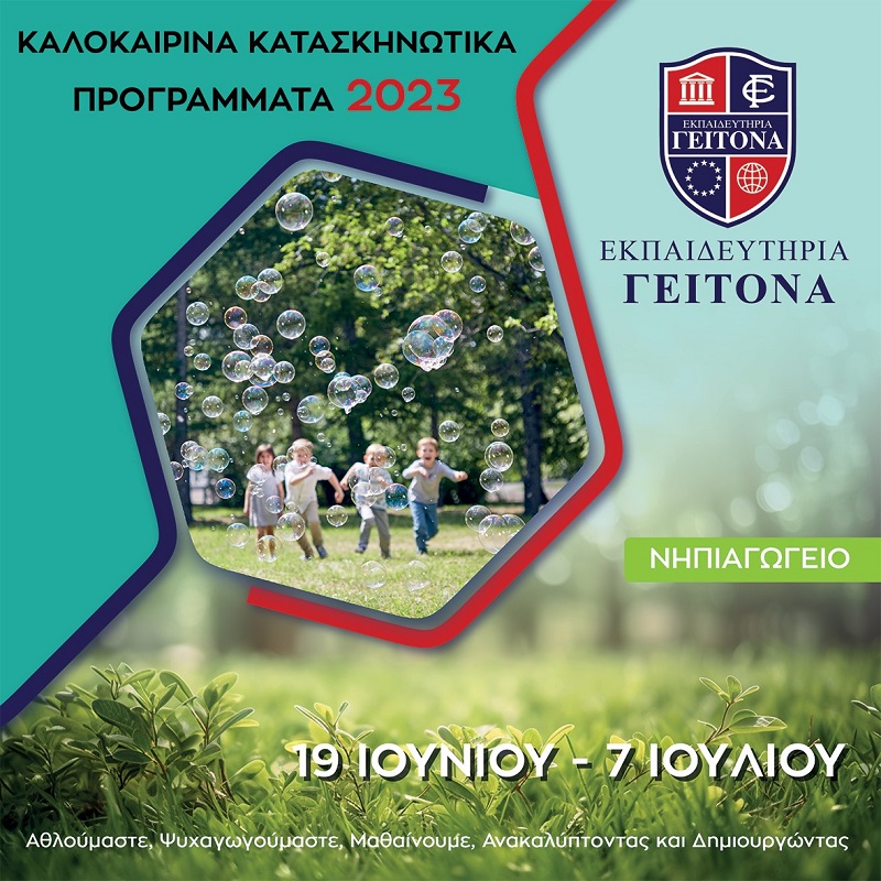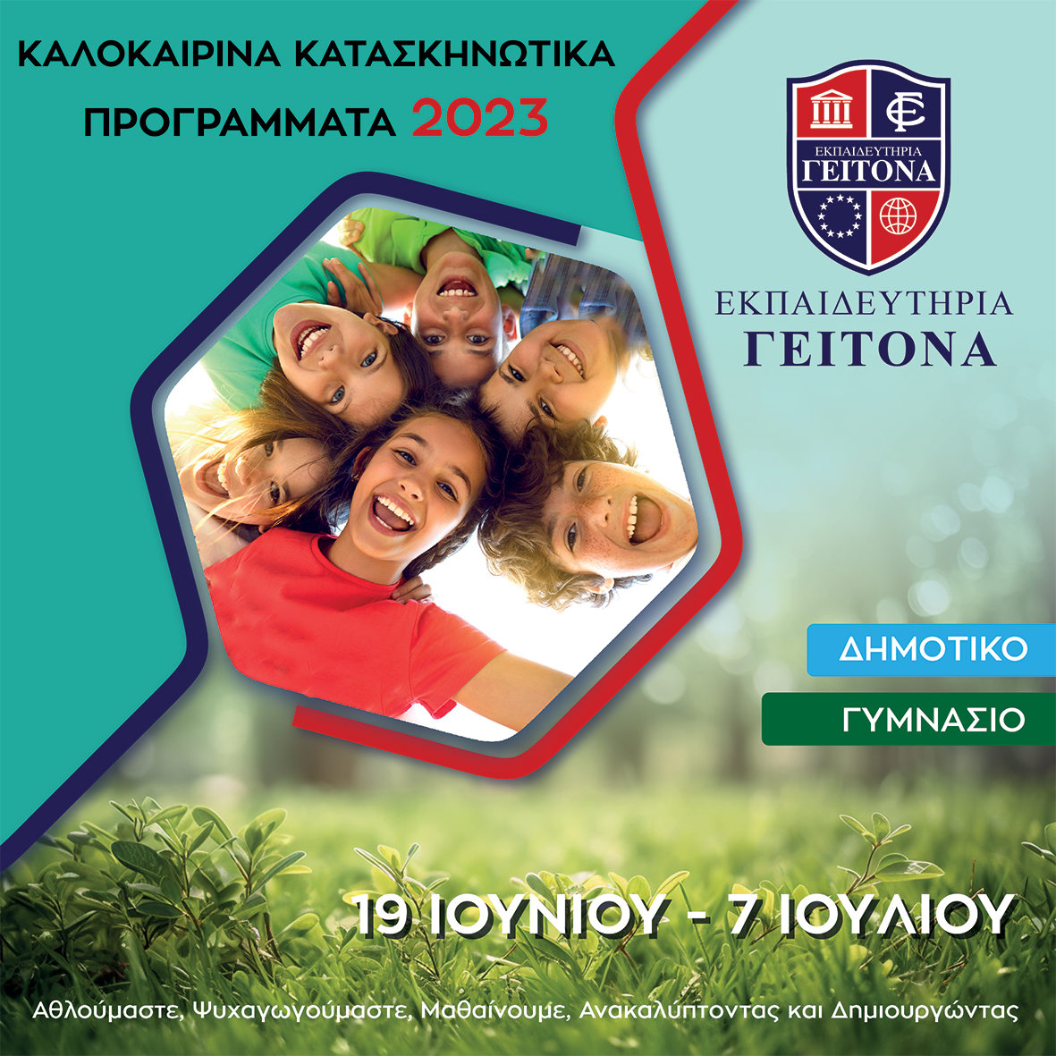 Πιστοί στην βασική αρχή τους, ότι η μάθηση πρέπει να είναι κυρίως βιωματική, αλλά και ανταποκρινόμενοι στην αγωνία πολλών γονέων για δημιουργική και ουσιαστική απασχόληση των παιδιών, οι άνθρωποι των Εκπαιδευτηρίων Γείτονα σχεδιάζουν και υλοποιούν κάθε καλοκαίρι προγράμματα βιωματικής μάθησης, στοχευμένης γνωστικής κατάρτισης και αθλητικής δράσης.