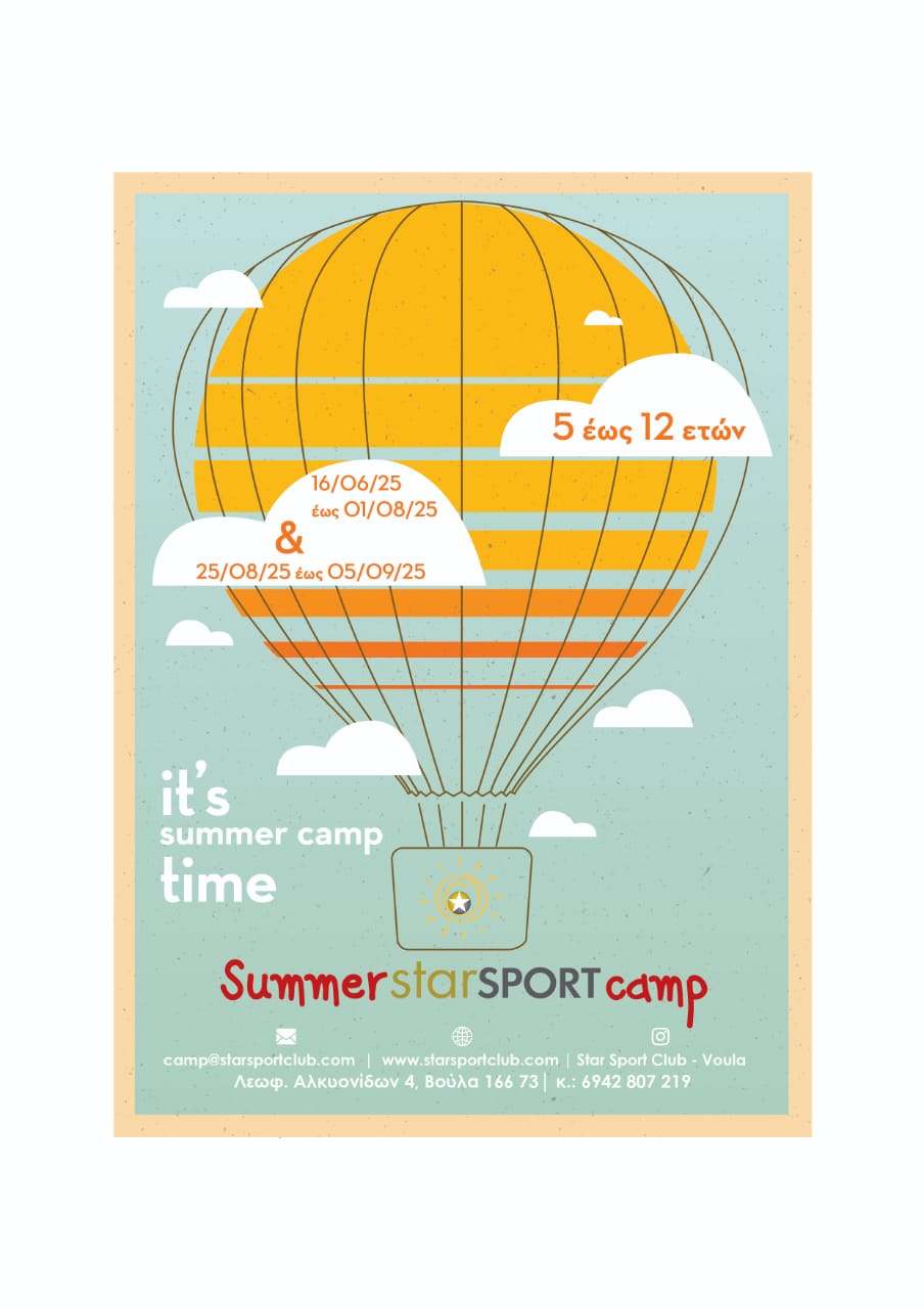 Ένα ξέγνοιαστο, δημιουργικό και γεμάτο δράση καλοκαίρι ξεκινά στο Summer Star Sport Camp 2025, με ατελείωτο παιχνίδι, δημιουργικές δραστηριότητες και… αθλητικές προκλήσεις, σε έναν ανανεωμένο χώρο που έχει υποστεί ολική ανακαίνιση και είναι έτοιμος να υποδεχτεί τους μικρούς του εξερευνητές για 10η συνεχόμενη χρονιά.