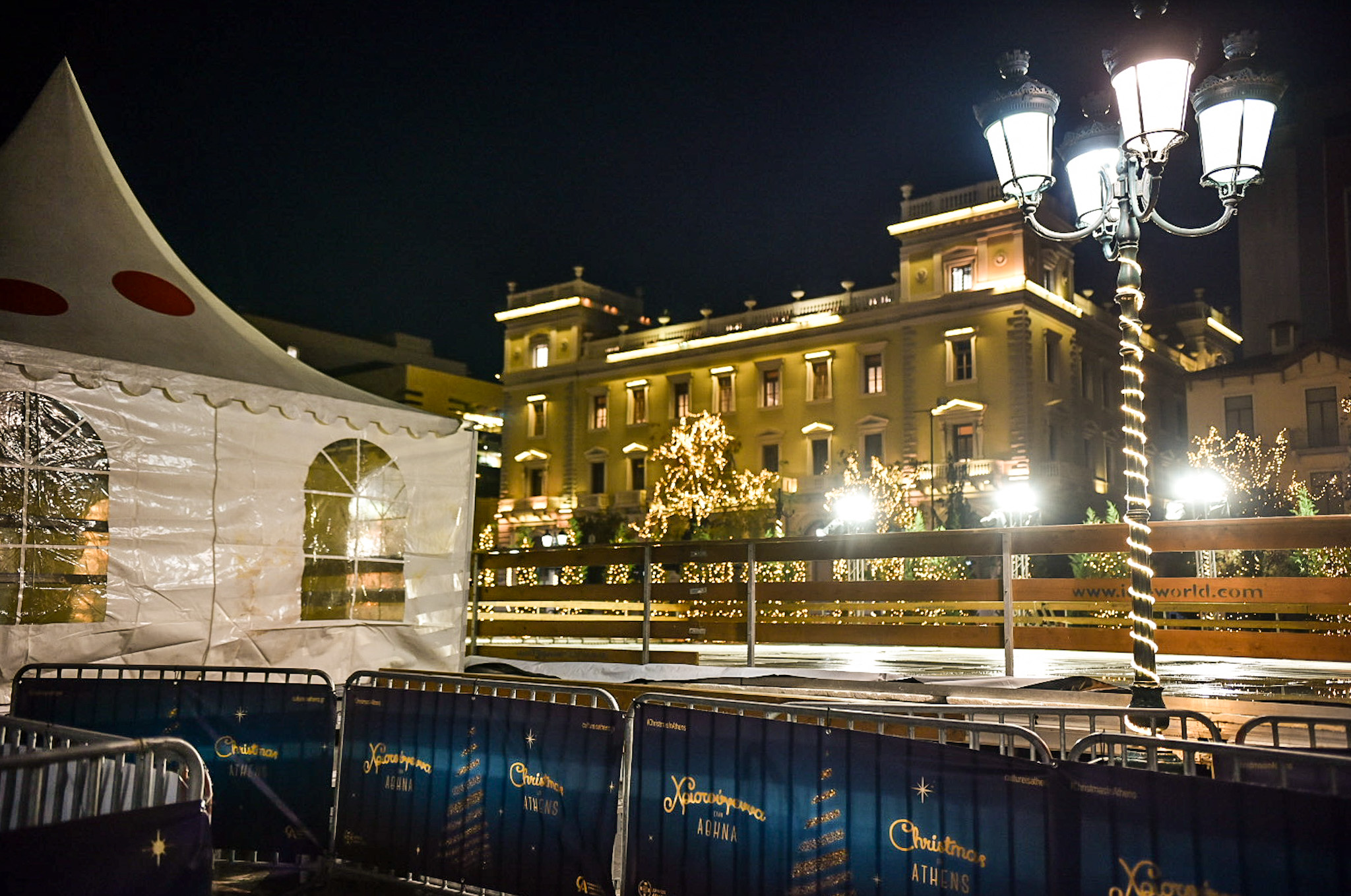Ένα μεγάλο παγοδρόμιο στήθηκε στην πλατεία Κοτζιά στην Αθήνα