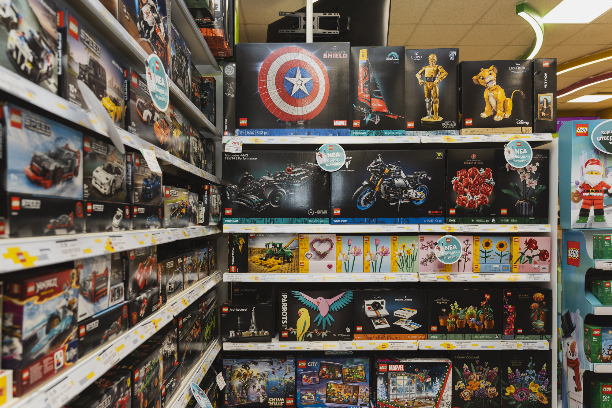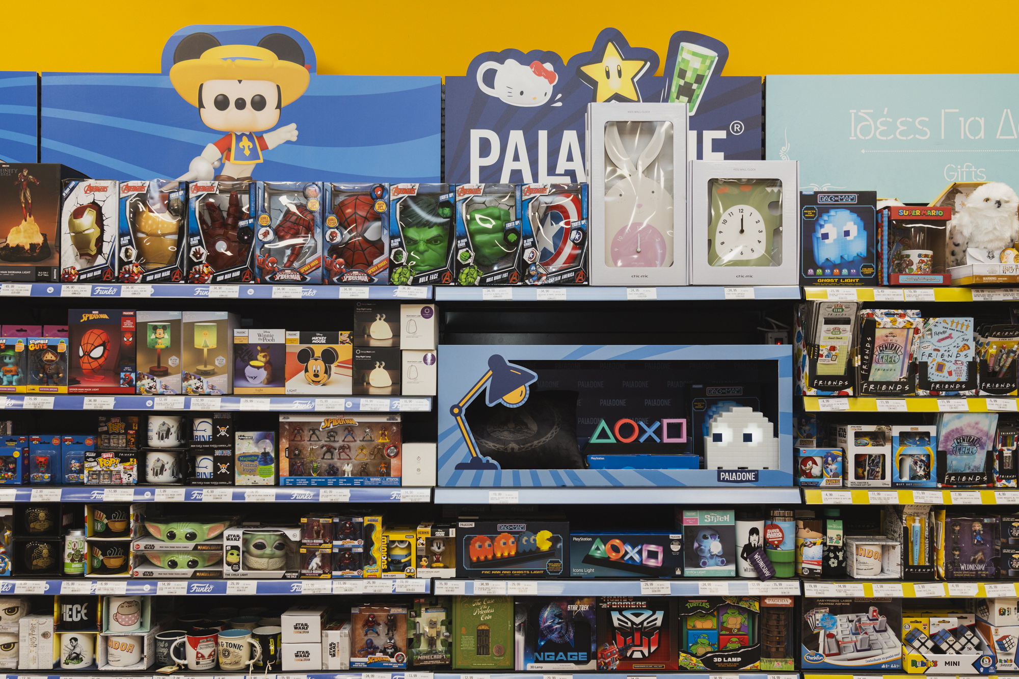 Για να διευκολύνει ακόμη περισσότερο την περιήγηση, το κατάστημα χωρίζεται σε ζώνες, με την πρώτη να απαρτίζεται μεταξύ άλλων από εποχιακά είδη. Αυτό το διάστημα ντύνεται χριστουγεννιάτικα, ενώ στο συγκεκριμένο section θα βρεις παιχνίδια από επώνυμες εταιρίες όπως τα all time classic Lego, Playmobil, αλλά και Hot Wheels, μικρά οχήματα και αυτοκινητόδρομους. Θα βρεις επίσης μία μεγάλη γκάμα παιχνιδιών για τις πιο αγαπημένες κονσόλες ηλεκτρονικών παιχνιδιών, αλλά και βρεφικά παιχνίδια.