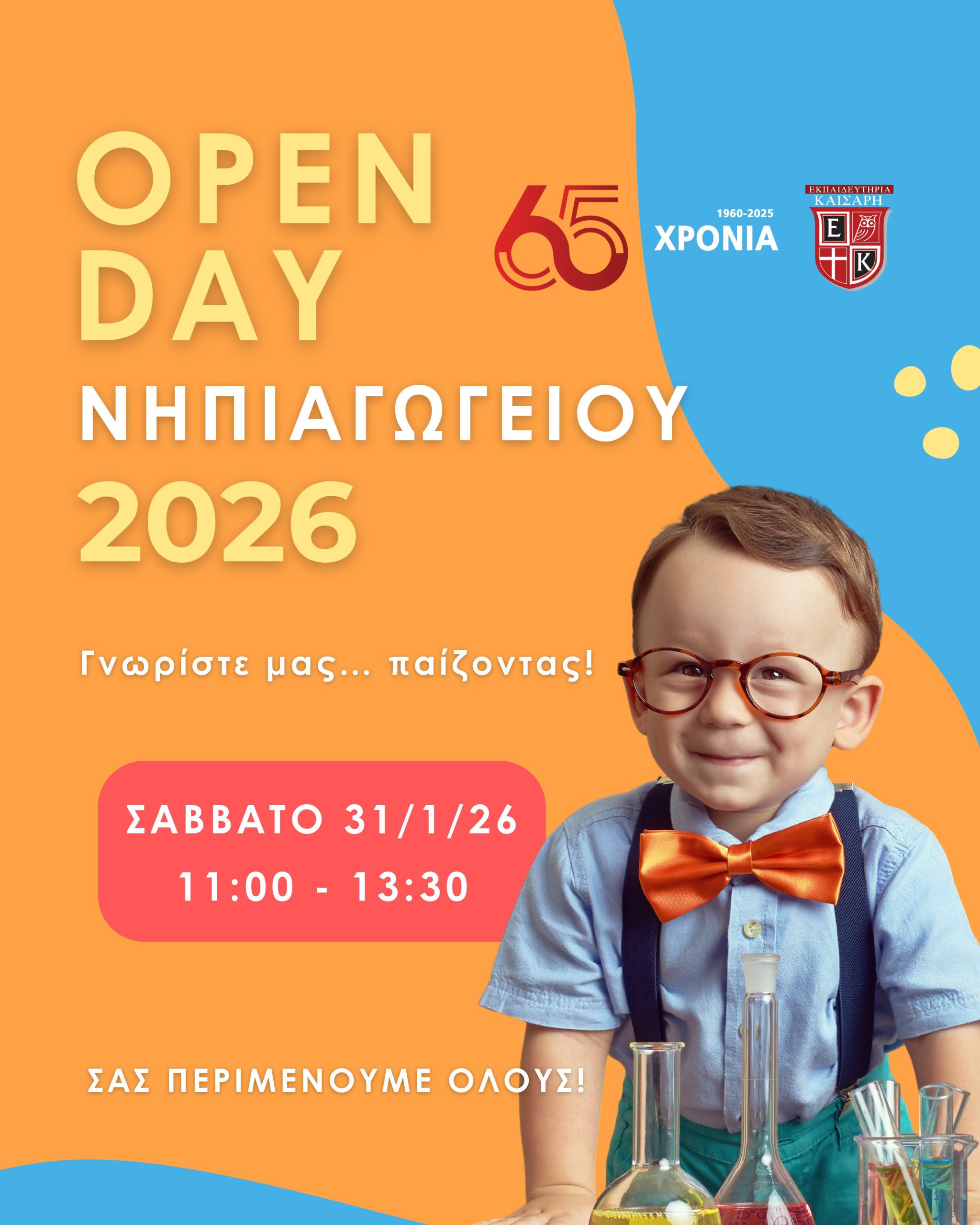 Μια ανοιχτή, βιωματική εκδήλωση ειδικά για παιδιά που θα φοιτήσουν στο Προνήπιο και στο Νήπιο τη σχολική χρονιά 2026–2027 διοργανώνουν τα Εκπαιδευτήρια Καίσαρη, το Σάββατο 31 Ιανουαρίου.
