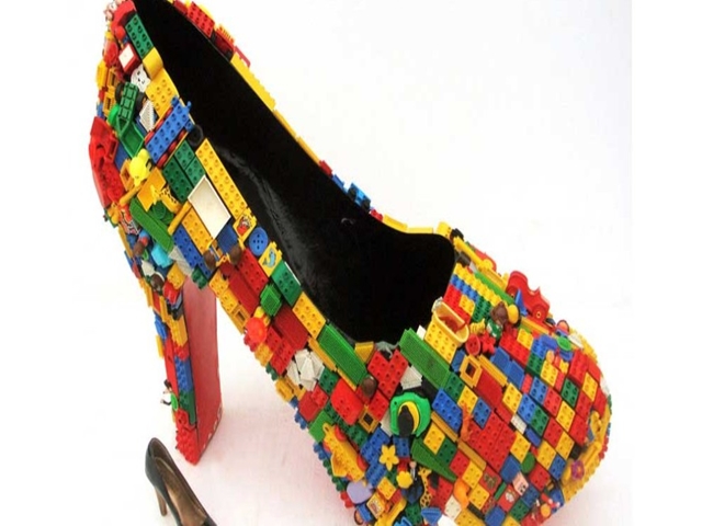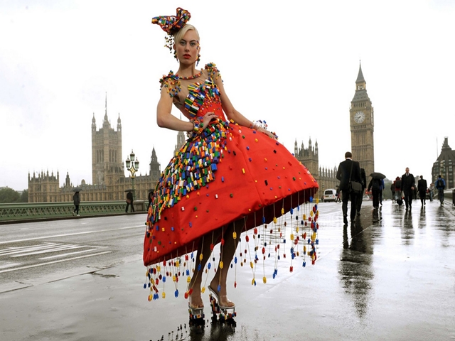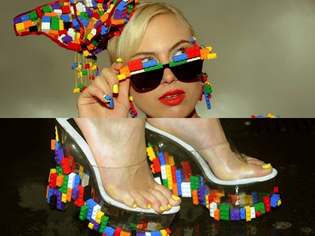 Ή ακόμη και ολόκληρο φόρεμα σεταρισμένο με αξεσουάρ και παπούτσια για την εβδομάδα μόδας του Λονδίνου, για τα οποία χρησιμοποιήθηκαν 5.000 τουβλάκια Lego.