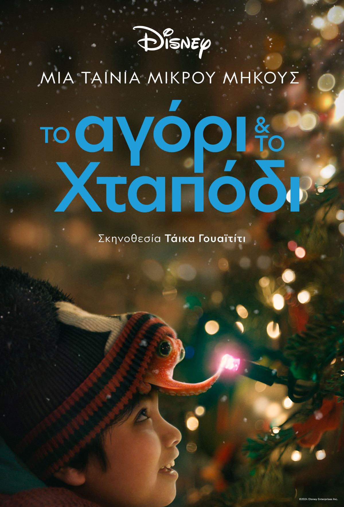 «Το Aγόρι & Το Χταπόδι» αποτελεί την πιο πρόσφατη δημιουργική συνεργασία του Γουαϊτίτι με την The Walt Disney Company. Ο βραβευμένος σκηνοθέτης και παραγωγός έχει επίσης σκηνοθετήσει τις ταινίες «Thor: Ragnarok» (2017) και «Thor: Love and Thunder» (2022) των Marvel Studios, το «Τζότζο» (2019) της Searchlight Pictures και το «Ένα Γκολ για τη Νίκη» (2023). Επίσης, είναι executive producer των σειρών του Disney+ «Reservation Dogs», «What We Do in the Shadows» καθώς και της πολυαναμενόμενης σειράς «Interior Chinatown». Η εορταστική ταινία μικρού μήκους «Το Aγόρι & Το Χταπόδι», δημιουργήθηκε σε συνεργασία με το creative agency adam&eveDDB και την παραγωγή ανέλαβε η Hungry Man. Η μελωδική διασκευή του τραγουδιού «Part of Your World» από την ταινία της Disney «Η Μικρή Γοργόνα» (1989) ακούγεται καθ’όλη τη διάρκεια της ταινίας, τονίζοντας την επιθυμία του χταποδιού να εξερευνήσει τον κόσμο της στεριάς. Η όμορφη αυτή εκτέλεση του αγαπημένου τραγουδιού των fans της Disney, ηχογραφήθηκε ζωντανά με 60μελή ορχήστρα ενώ η μίξη έγινε στο θρυλικό στούντιο Abbey Road.