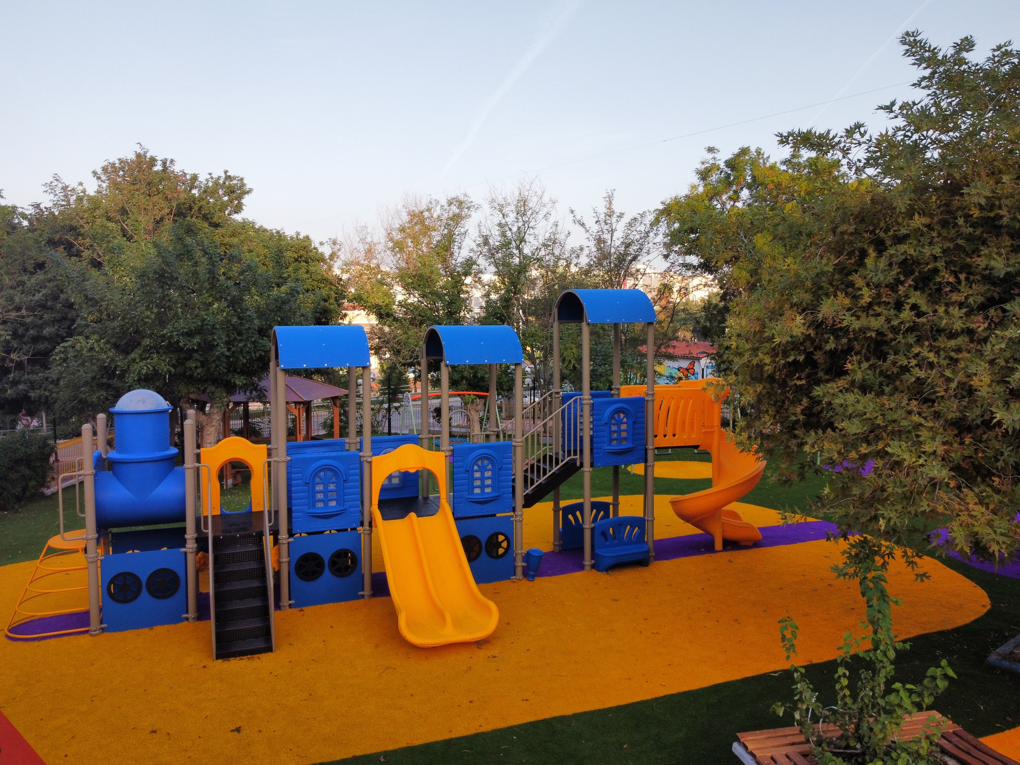 Στην παιδική χαρά τοποθετήθηκε νέο δάπεδο ασφαλείας, κούνιες με καθίσματα, τσουλήθρες, νέα παιχνίδια, σύγχρονα όργανα, νέα παγκάκια, πέργκολες και τραπέζια.