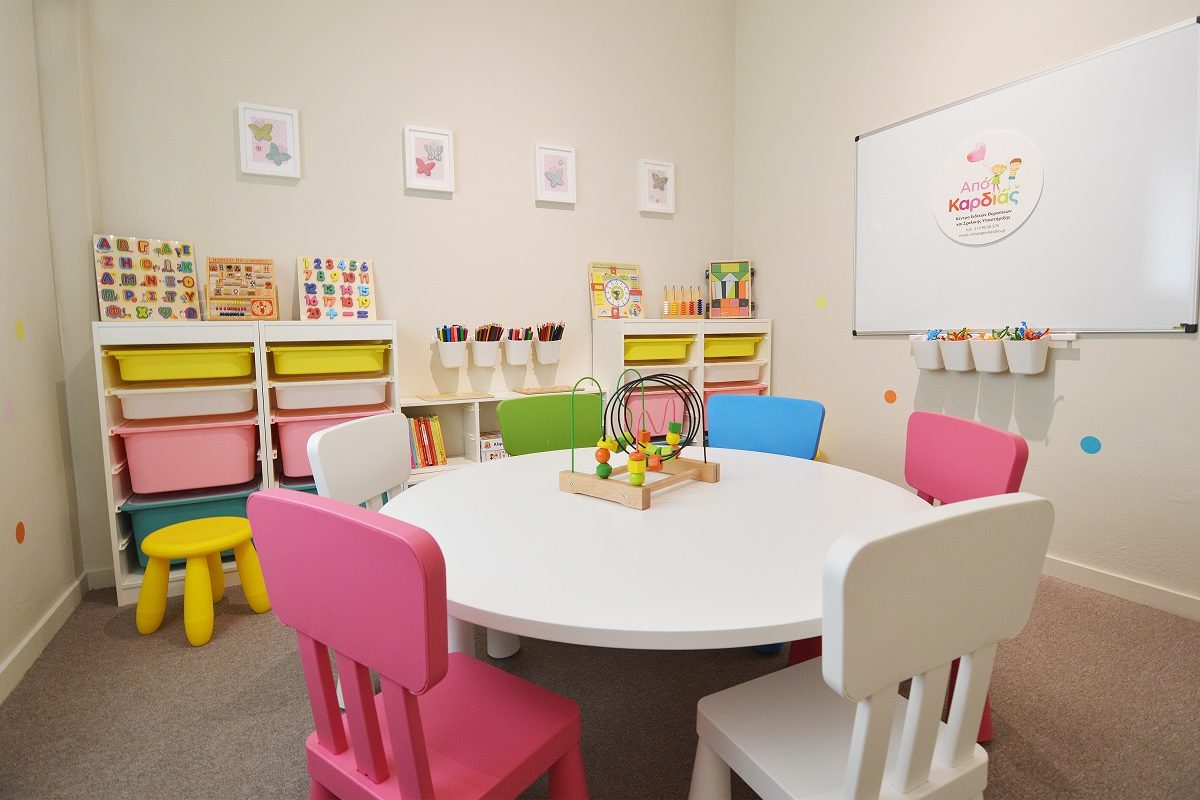 Οι γονείς και τα παιδιά που θα επισκεφθούν το κέντρο ειδικών θεραπειών «Από καρδιάς», θα εντυπωσιαστούν βέβαια και από τον χαρούμενο και φιλικό χώρο. Τα δωμάτια που γίνονται οι συνεδρίες είναι γεμάτα με παιχνίδια και εξοπλισμό αισθητηριακής ολοκλήρωσης, ενώ μία έκρηξη χρωμάτων δημιουργεί εκείνη την παιχνιδιάρικη ατμόσφαιρα που θα κάνει το κάθε παιδί να αισθάνεται οικεία και άνετα.