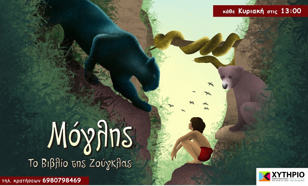 Το γνωστό σε όλους παραμύθι, Μόγλης – Το Βιβλίο της Ζούγκλας, ζωντανεύει κάθε Κυριακή στη 13:00, στον μαγικό κήπο του Θεάτρου Χυτήριο στο Γκάζι, ο οποίος μεταμορφώνεται σε μία υπέροχη ζούγκλα για να υποδεχτεί μικρούς και μεγάλους σε ένα καλοκαιρινό πάρτι γεμάτο εκπλήξεις, τραγούδι και χορό.