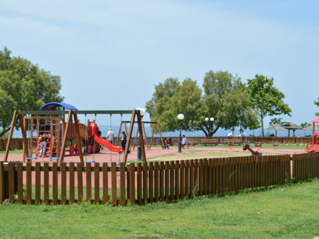 Η μεγαλύτερη παιδική χαρά των Βαλκανίων είναι μπροστά σου. Υπάρχει μία πολύ μεγάλη έκταση γεμάτη κούνιες, τσουλήθρες και απίθανα παιχνίδια η οποία χωρίζεται σε τρία τμήματα ανάλογα με την ηλικία του παιδιού και υπάρχουν πολλά κιόσκια και φυσικά παγκάκια και μικρά γηπεδάκια για μαμάδες. Και το καλύτερο; Βρίσκεσαι δύο βήματα μακριά από το κύμα. Το τέλειο σκηνικό δηλαδή.
