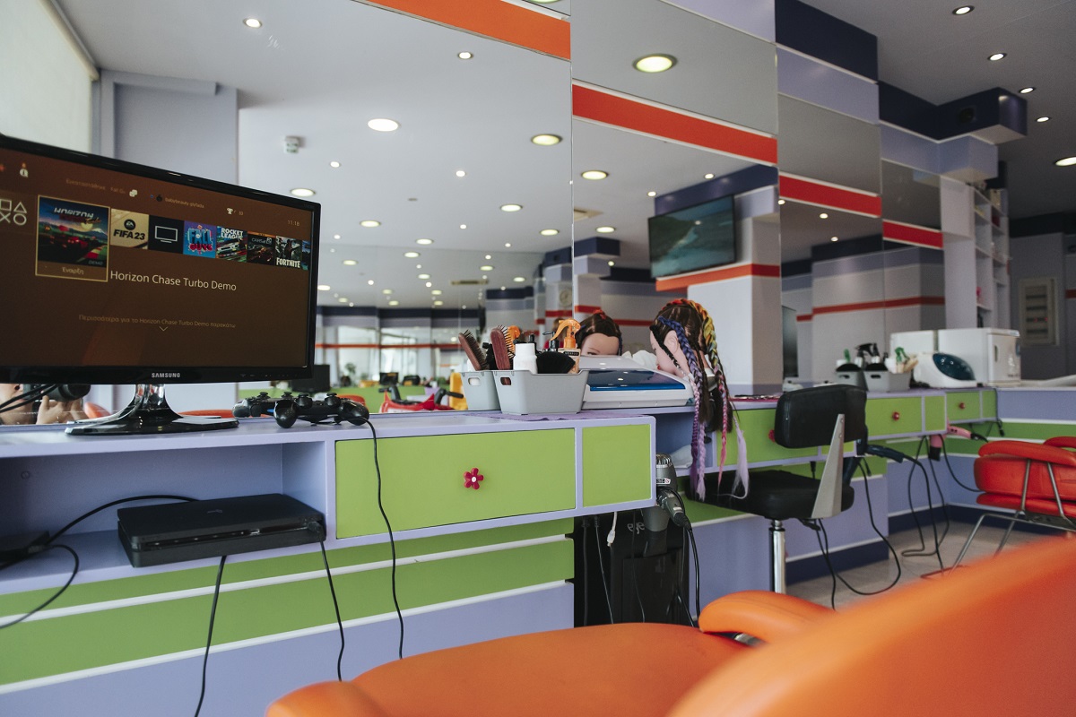 Ο χώρος συμπληρώνεται με έναν mini παιδότοπο, που κάνει την αναμονή πιο διασκεδαστική και σίγουρα πιο εύκολη για μικρούς και μεγάλους. Όσο για το αποτέλεσμα, αυτό είναι χαριτωμένα παιδικά κεφάλια, με κοριτσίστικες πλεξίδες ή αγορίστικα σχέδια με ιστούς και κεραυνούς, αλλά και οτιδήποτε άλλο μπορεί να ευχαριστήσει τα παιδιά και τους γονείς τους.