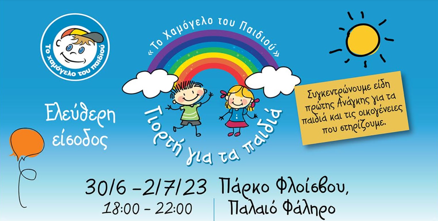«Το Χαμόγελο του Παιδιού» διοργανώνει και μας προσκαλεί στην Καλοκαιρινή Γιορτή για τα παιδιά, που θα πραγματοποιηθεί στο Πάρκο Φλοίσβου από την Παρασκευή 30 Ιουνίου έως και την Κυριακή 2 Ιουλίου και ώρες 18:00μ.μ – 22:00μ.μ., με ελεύθερη είσοδο και με την υποστήριξη του Δήμου Παλαιού Φαλήρου.