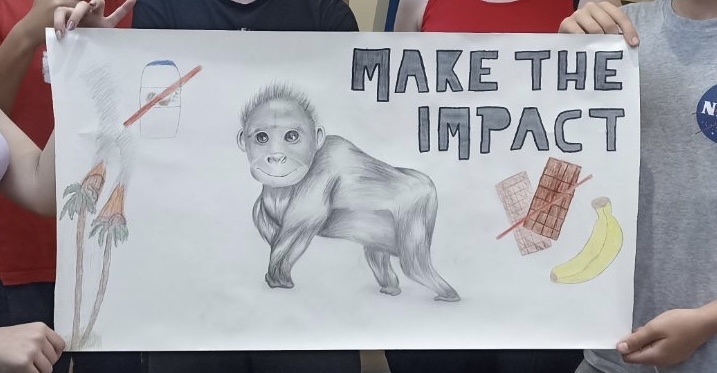 Κάθε χρόνο ασχολούμαστε με μία διαφορετική πτυχή των περιβαλλοντικών προβλημάτων. Φέτος εστιάσαμε στην καταστροφή των τροπικών δασών εξαιτίας της καλλιέργειας φοινικέλαιου. Ξέρετε το φοινικέλαιο χρησιμοποιείται παντού: στα καλλυντικά, στα τρόφιμα, στα γλυκά, σε πάρα πολλά προϊόντα. Για τον λόγο αυτό ολόκληρα τροπικά δάση αποψιλώνονται και στην θέση τους, φυτεύονται φοίνικες που μας δίνουν το φοινικέλαιο. Η αλόγιστη αυτή επέμβαση στην φύση δεν καταστρέφει μόνο την χλωρίδα αλλά απειλεί το φυσικό περιβάλλον γενικότερα, με συνέπειες όπως η κλιματική αλλαγή, η εξαφάνιση άγριων ζώων όπως οι ουρακοτάγκοι και η διατάραξη της αλυσίδας της ζωής.