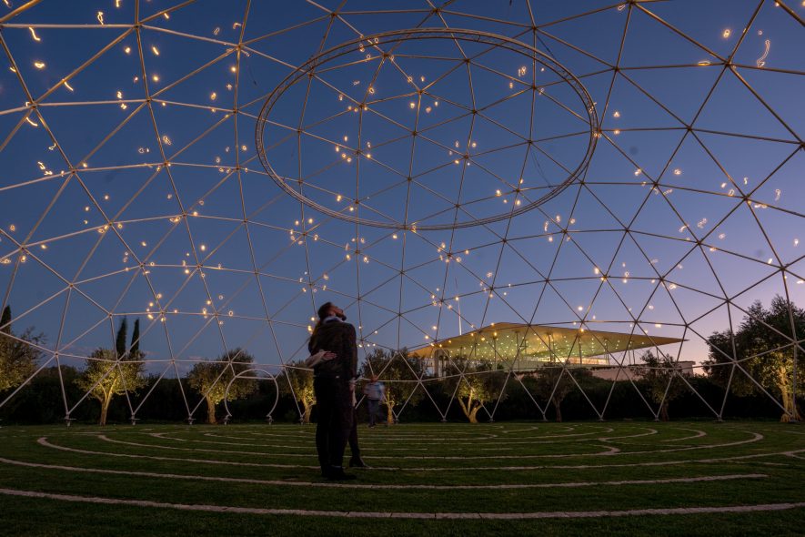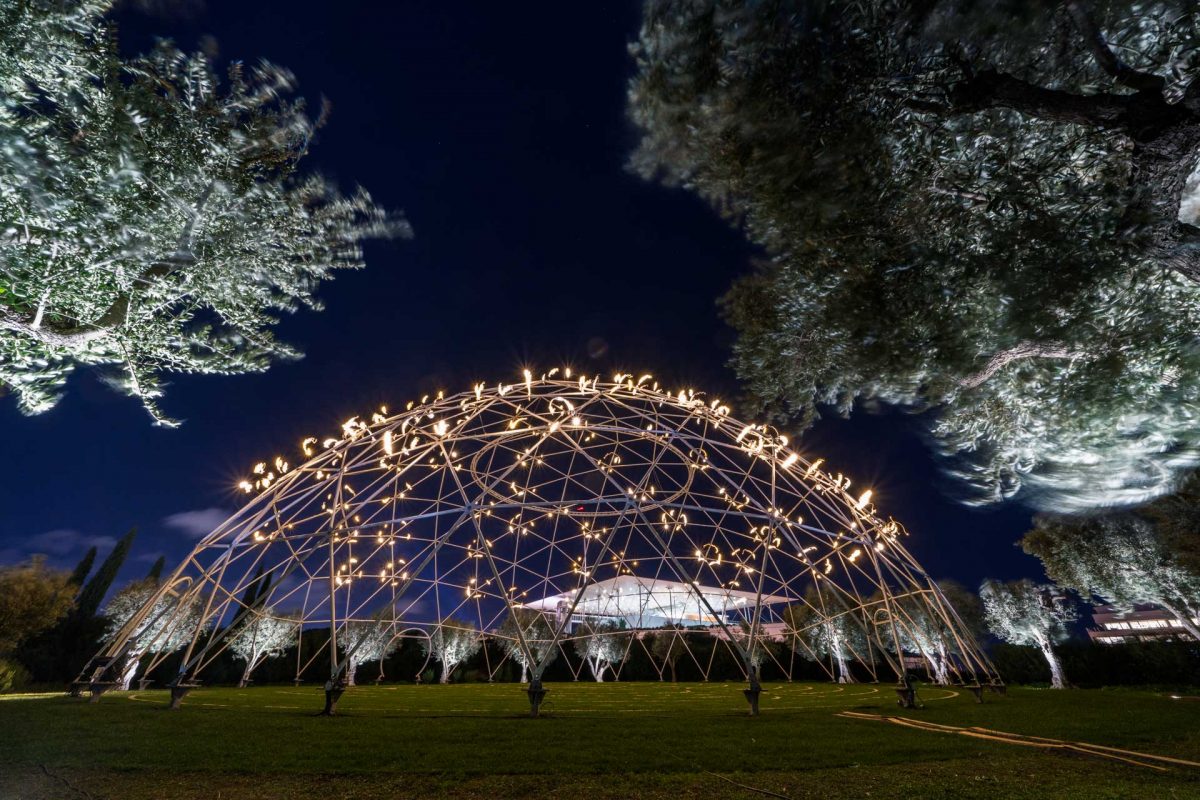 Αμέσως μετά, αφήστε τη λάμψη των πυγολαμπίδων του Firefly Field των Studio Toer να σας οδηγήσει στον Θόλο, εκεί όπου στο δικτύωμά του αιωρούνται εκατοντάδες κινούμενα σημεία φωτός.
